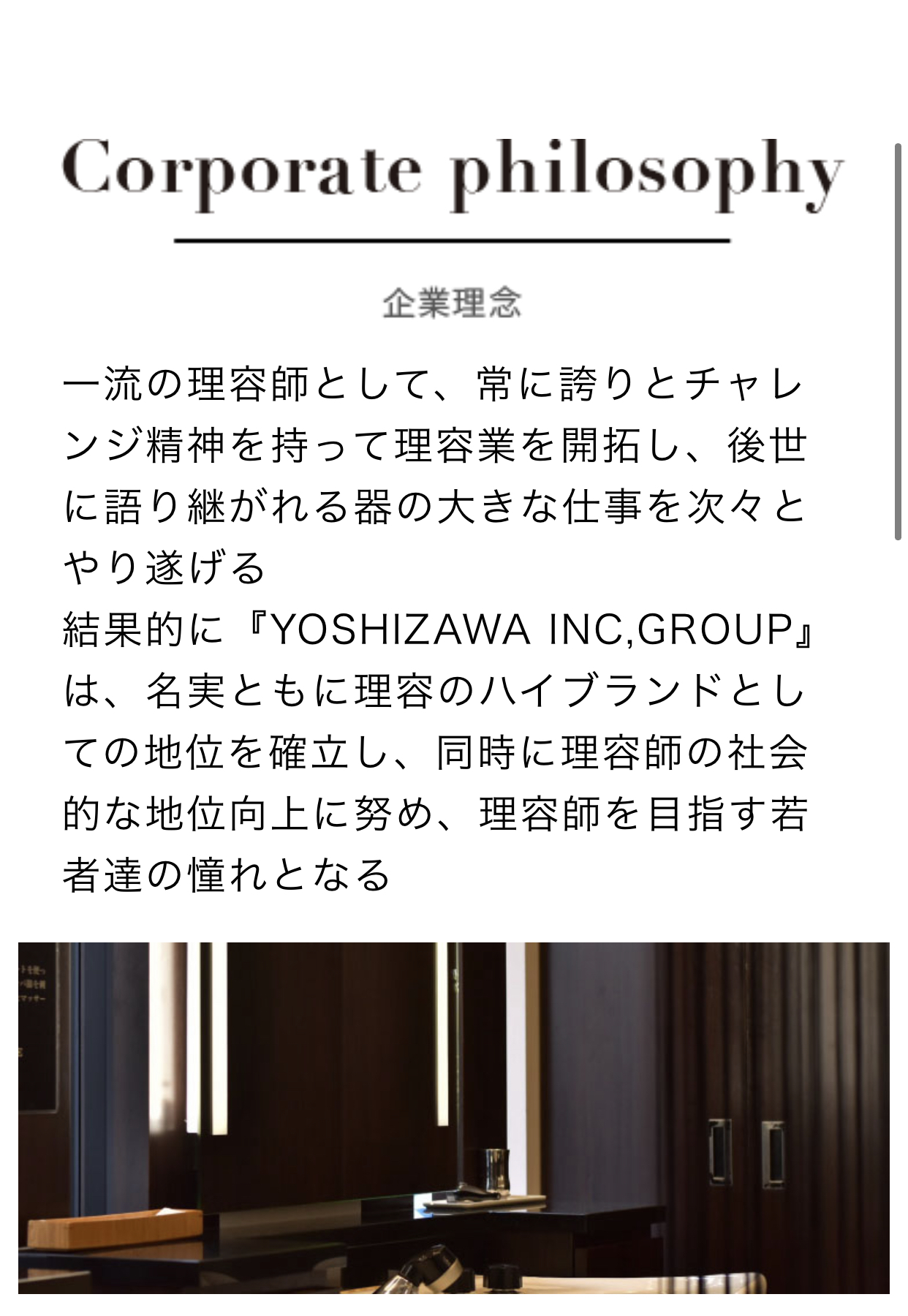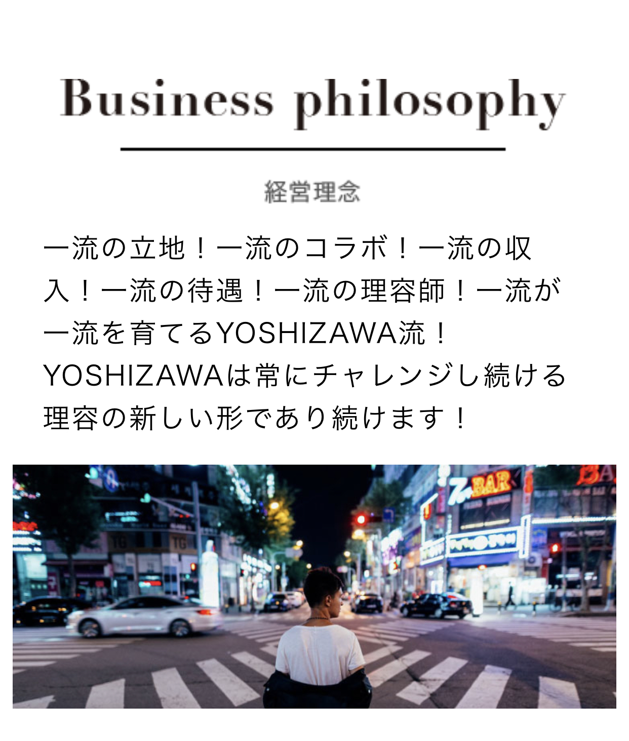 『理容業界の平均的な実績から生まれた常識は、YOSHIZAWAが打ち破って当然。むしろ、YOSHIZAWAが新基準を作り
