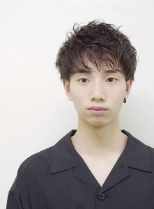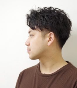 こちらは浅めのツーブロックに、ほぼ根元の立ち上がり程度のアイロンパーマをかけたスタイルです。