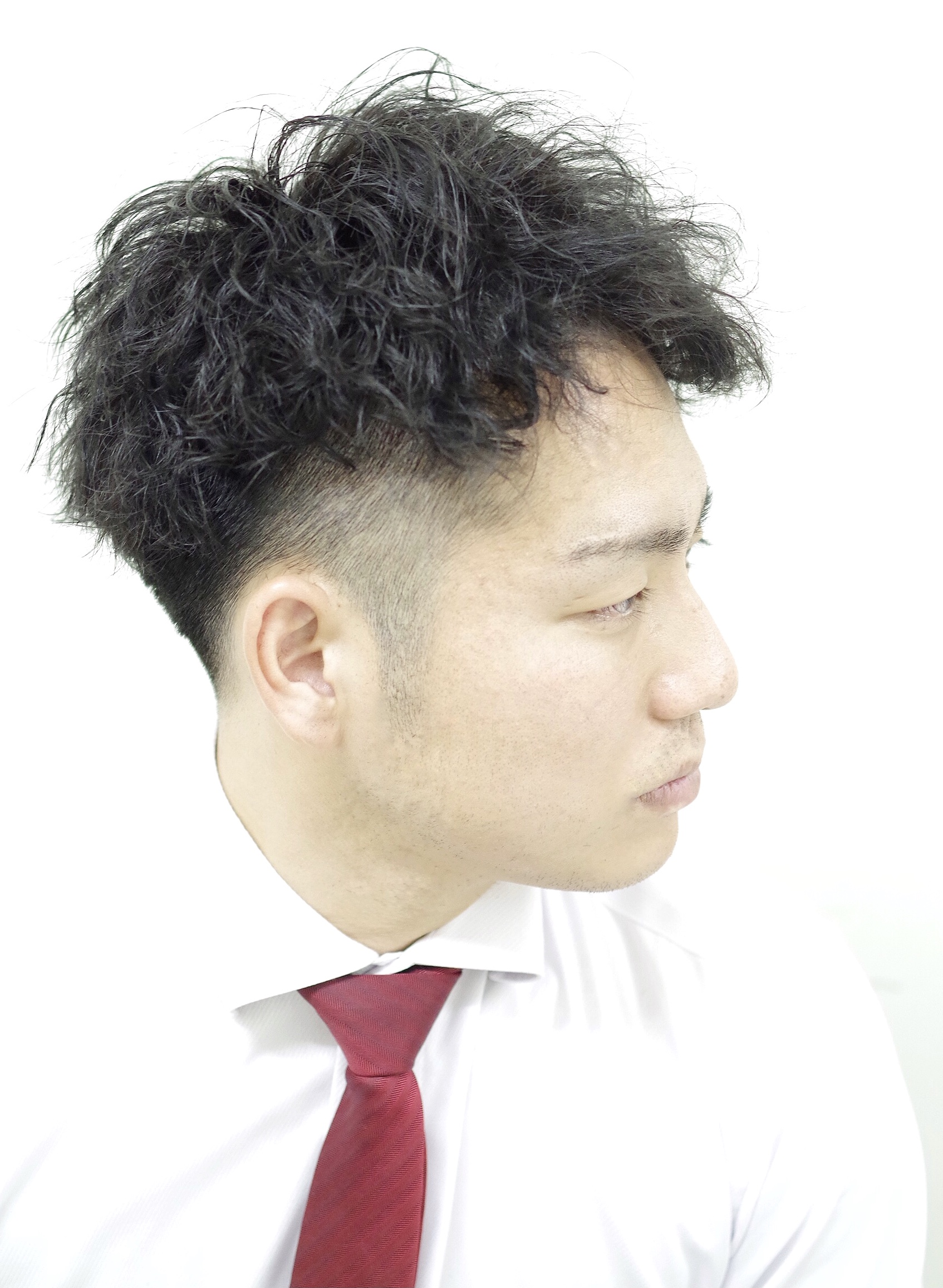 ツーブロックにツイストスパイラルパーマをかけたスタイル。