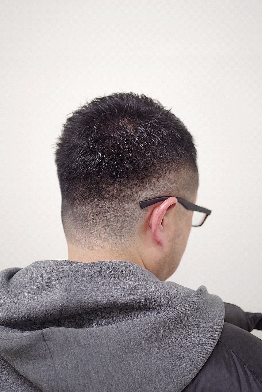 トップ、前髪を少しだけ残しワックスやジェルなどの整髪料で動きを出せるようにしまし