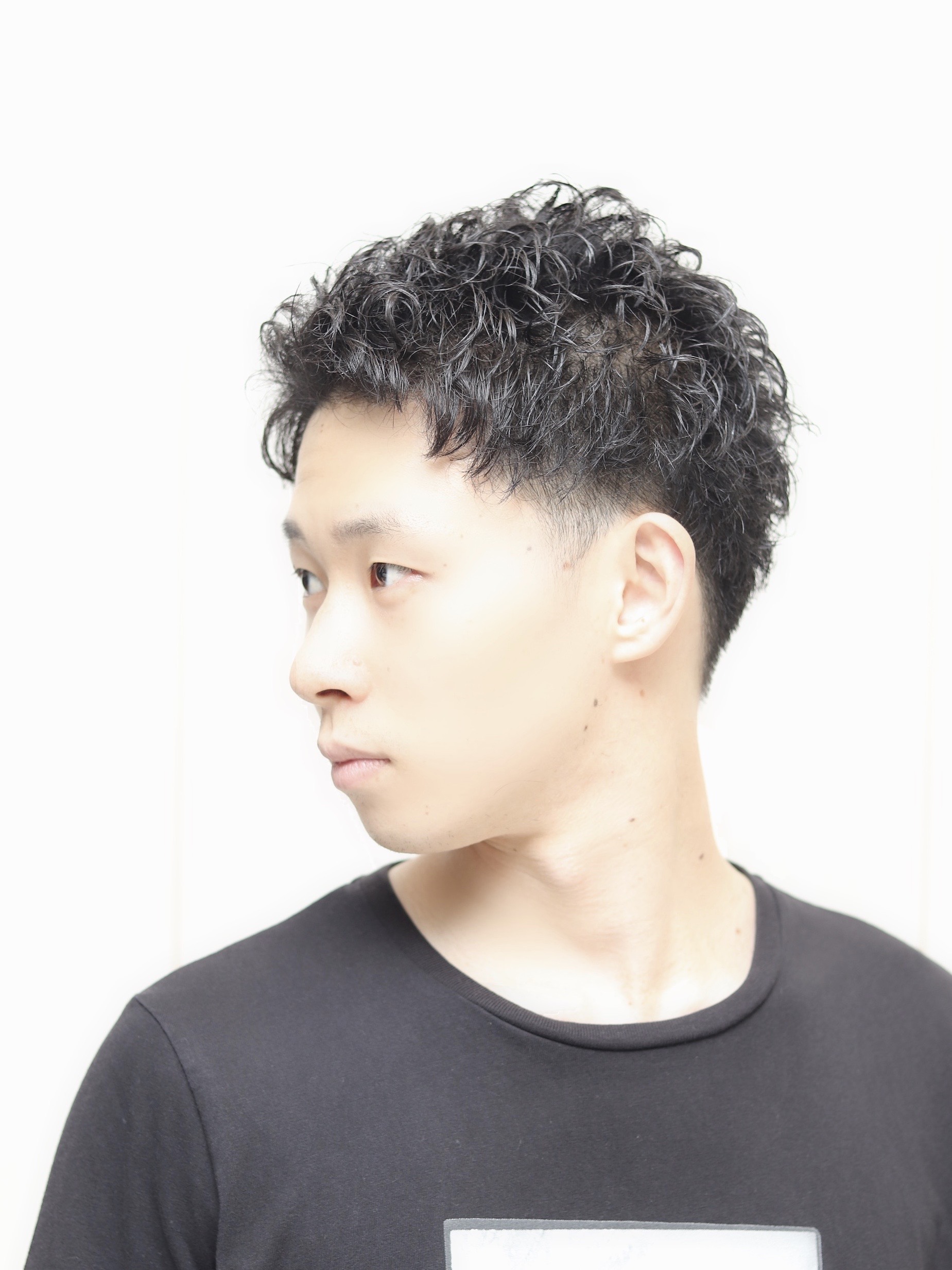 くせ毛を活かしたスタイルです。悩みだったくせ毛も活かすことができればパーマっぽくなります♪王道のツーブロックで耳周りをスッキリさせています!