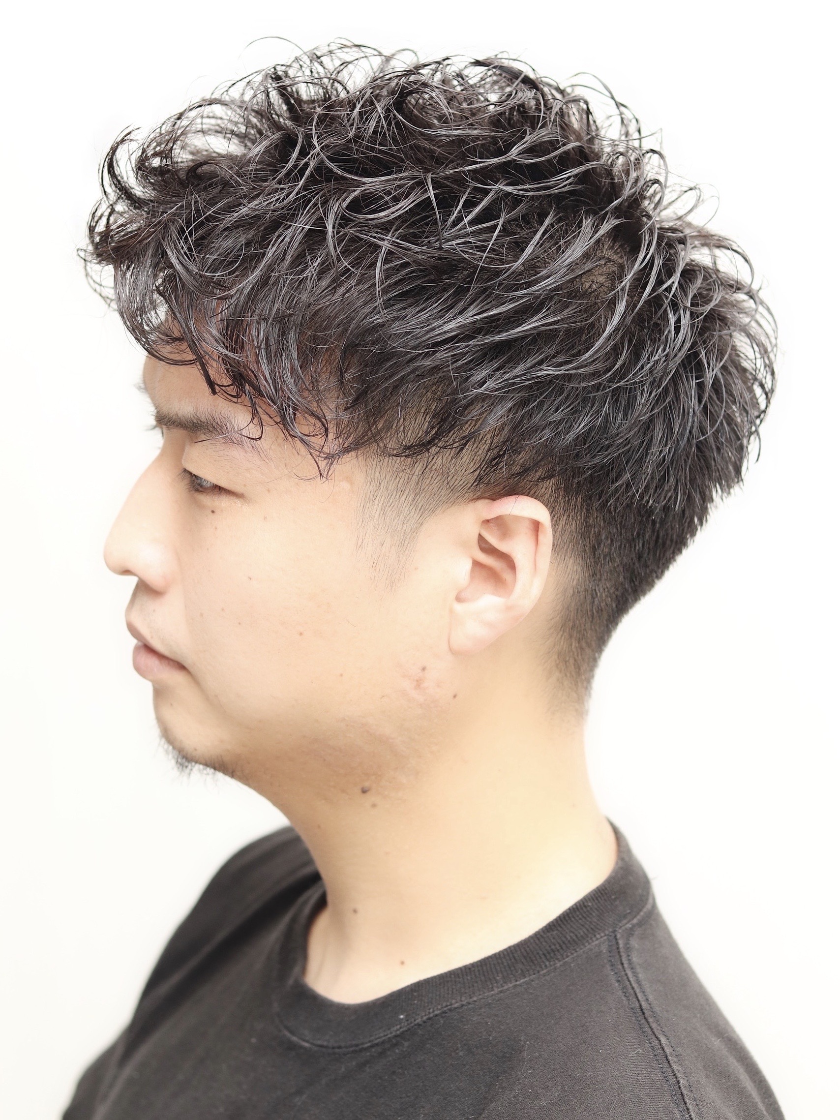 横はツーブロック、後ろは高めに刈り上げて全体的に軽い仕上がりにしました!パーマをかけることでいつもと違う雰囲気になります♪