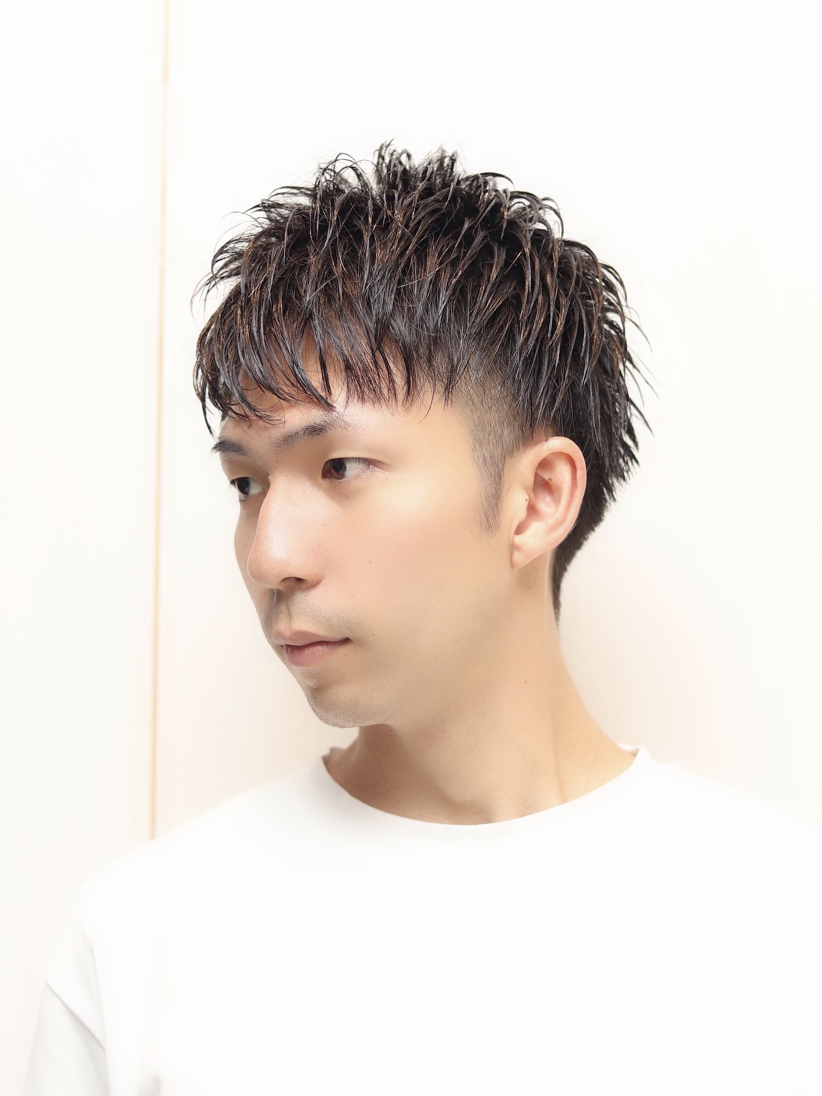 ツーブロックバリカン4mmを使用しています!極端に短すぎず長すぎずおすすです♪前髪に束につけたセクシーマッシュです♪
