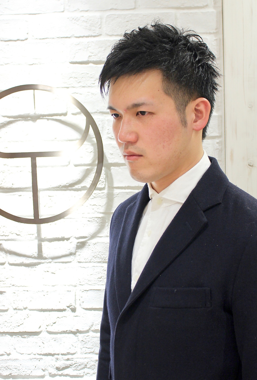 サイドは短めに刈り上げて、ツーブロックですがあまり長さの差をつけないでさりげない感じに仕上げました。トップとフロントは長さを残して動きが出る様にセニングを多めに入れました。ビジネスマンにぴったりのスタイルです。