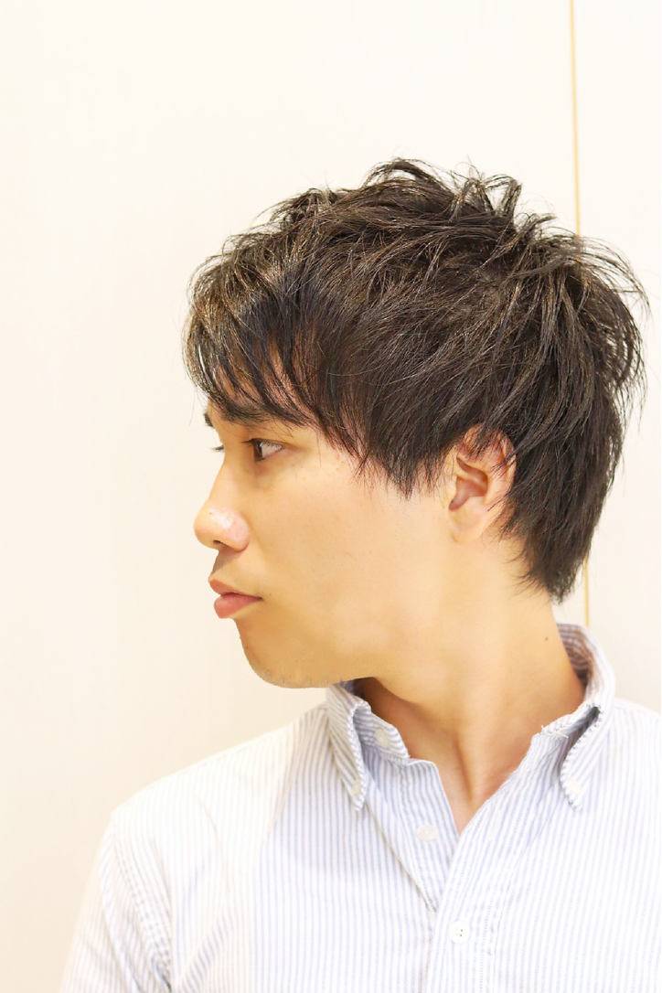 ビジネスマン向けに長さ残したスタイルです。元々ボリュームが出過ぎてしまうので、ストレートパーマをかけてボリュームを落としました。