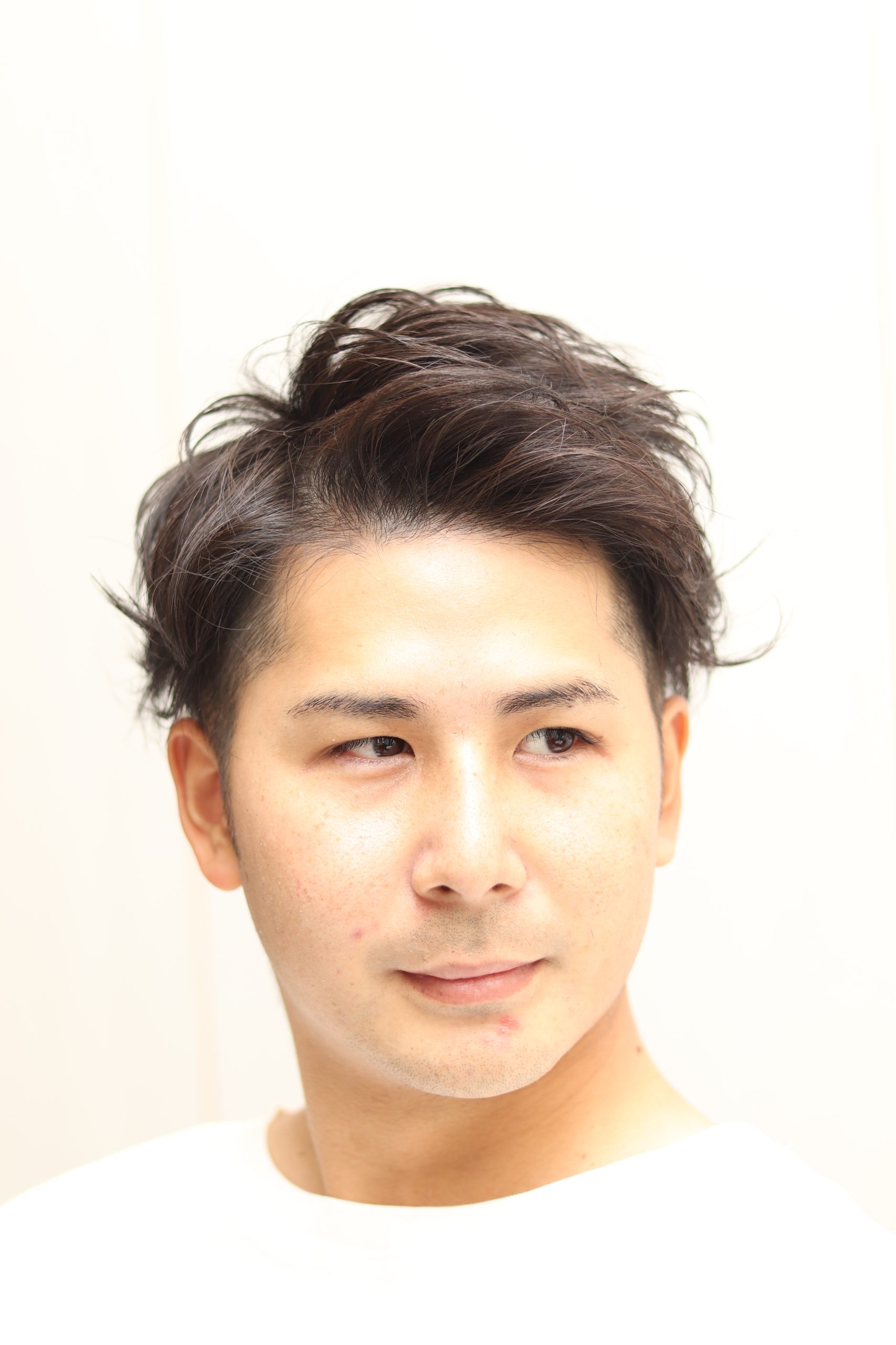 ツーブロックでトップはやや短めで立ち上がりやすいようにカットしてます。毛先を遊ばせてオシャレ感アップ!!