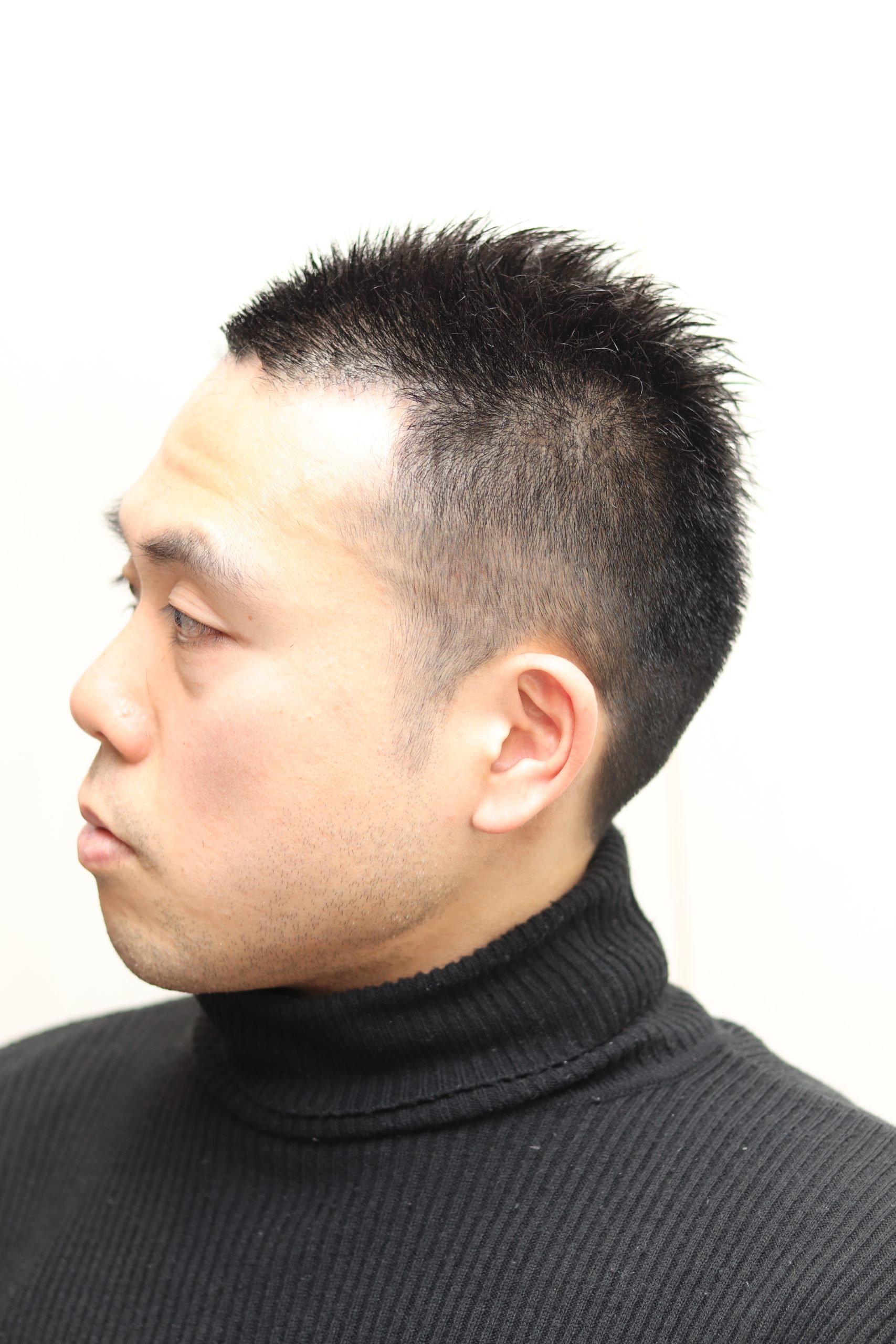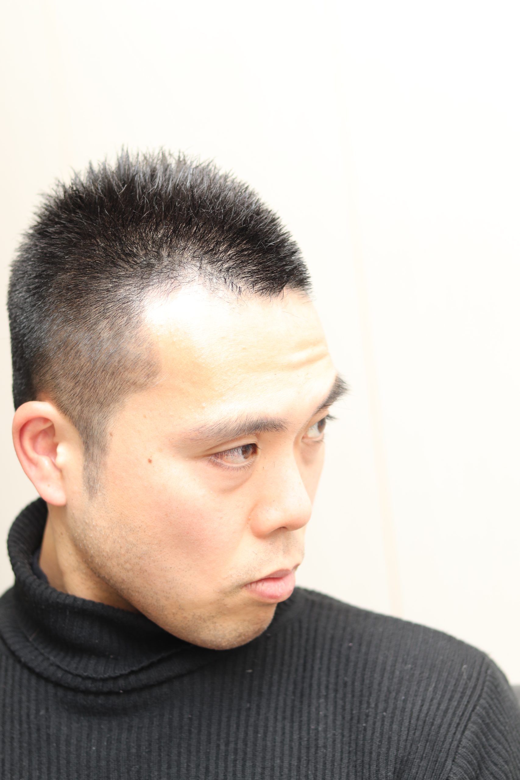 ほぼボウズだけどソフトモヒカンスタイルです。