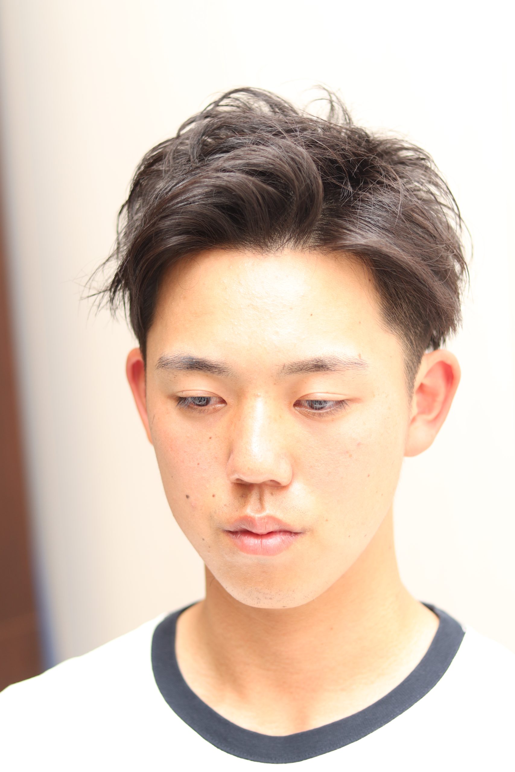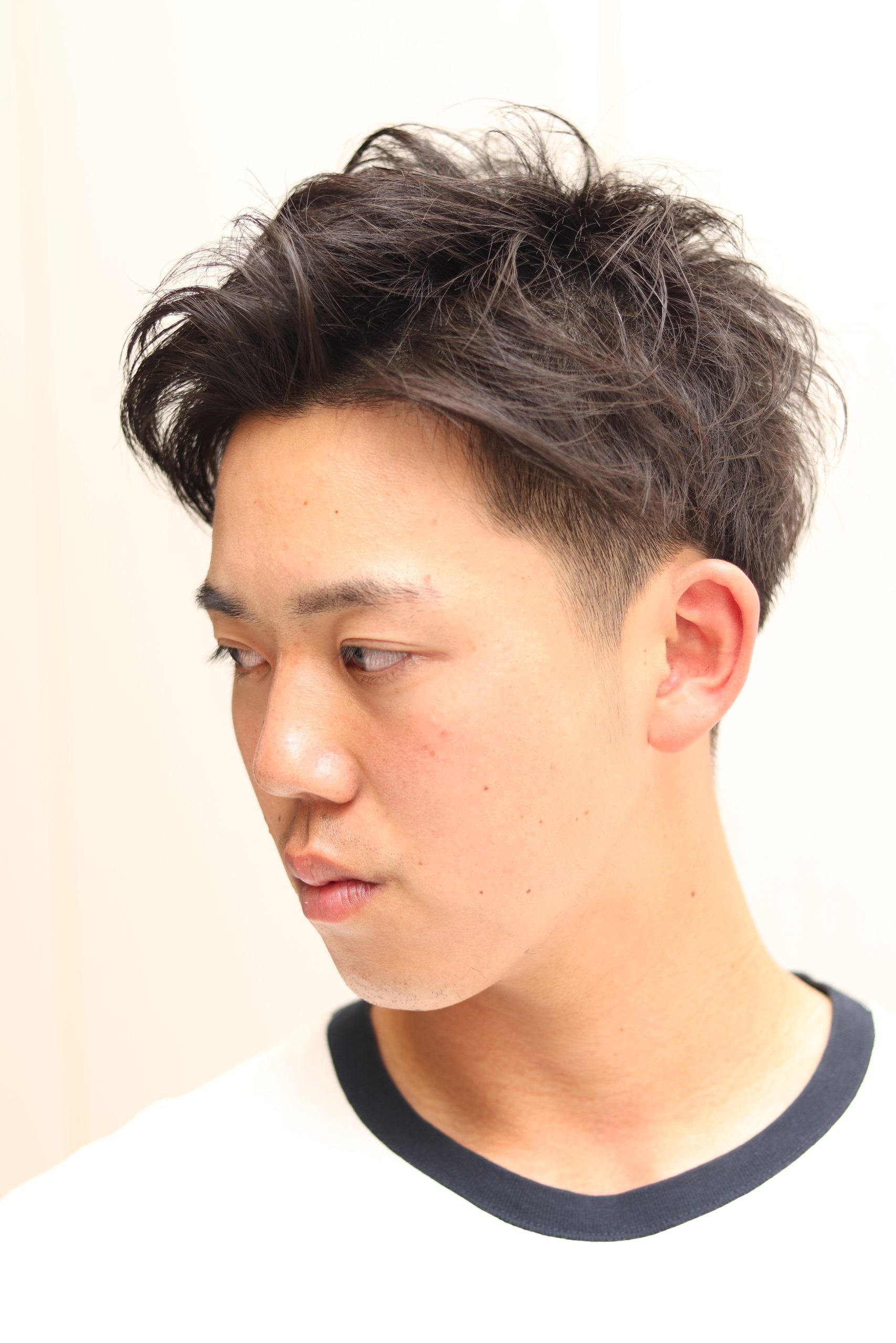 直毛の方をアップバング&ツーブロックスタイルにキマルようにアイロンを使ってパーマをかけております。
