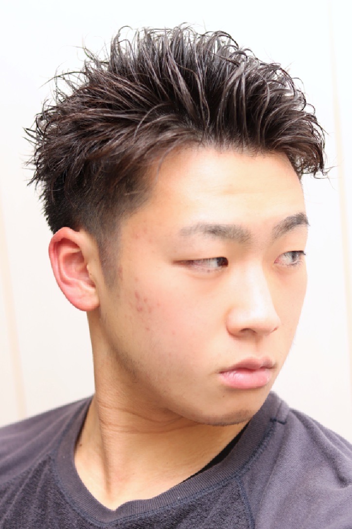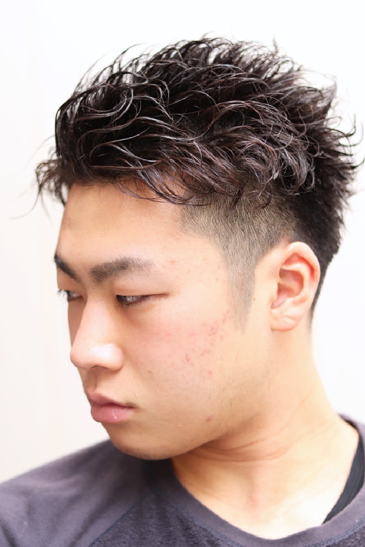 周りはツーブロックでトップは毛先に動きを出しやすくする為のパーマをかけております。