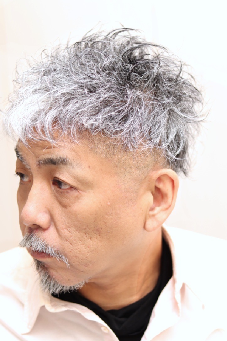 髪型にマンネリ化しているオジサンに輝きを与えるツーブロックパーマスタイルです。パーマは弱過ぎず、チリチリにならない位のほどよいくせ毛風です。