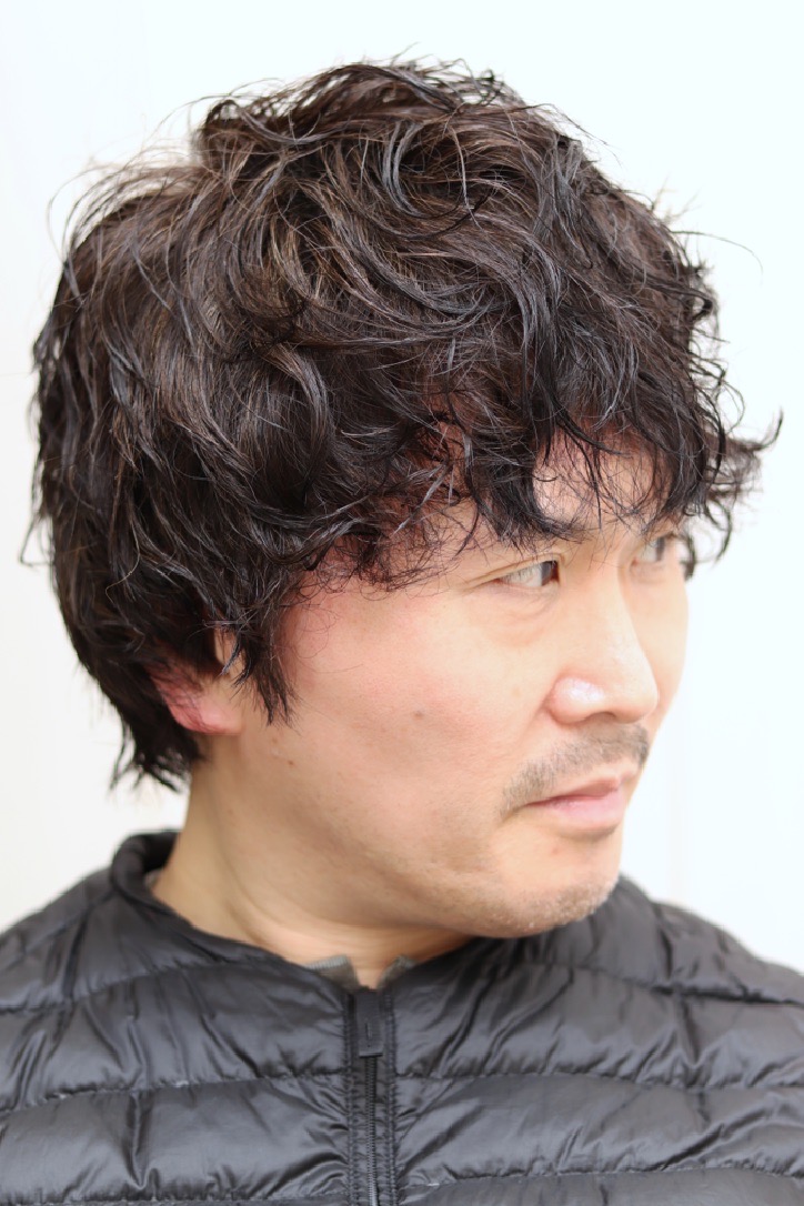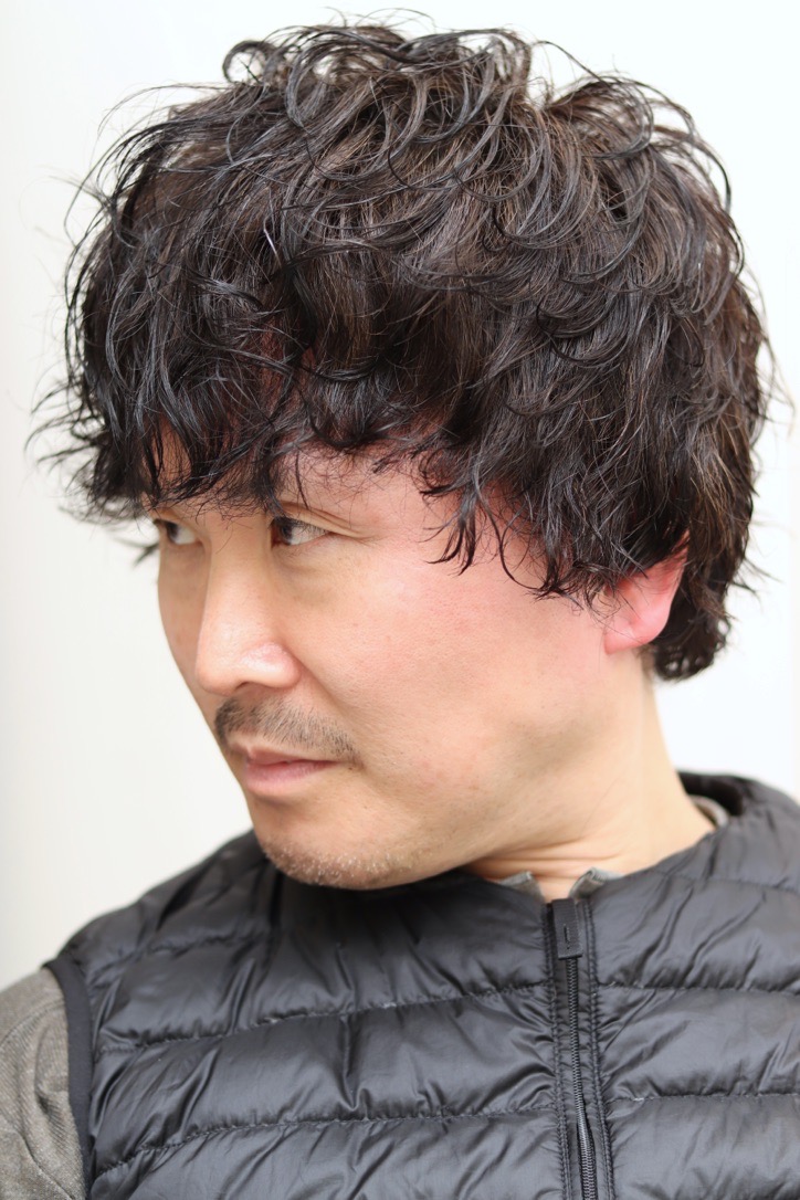スパイラルパーマを強めにかけた長すぎず、短すぎずのスタイルです。40代からでも似合います。