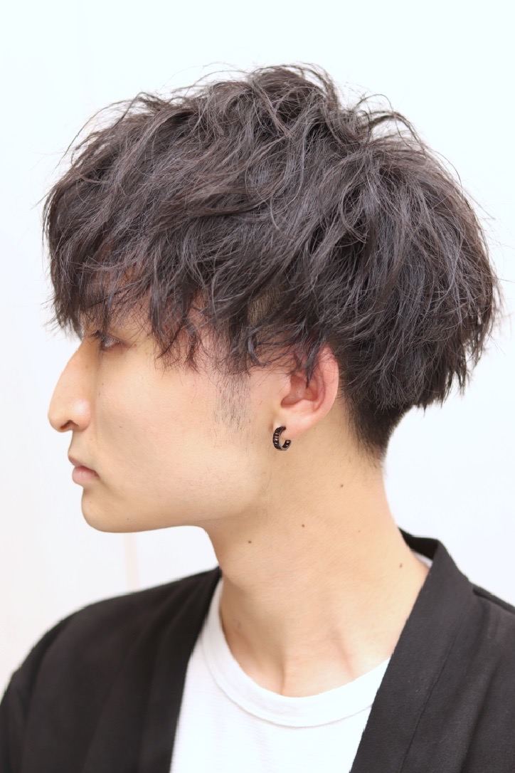 マッシュベースのツーブロックスタイルにツイストスパイラルパーマをかけてオシャレ感が120%アップしてます。