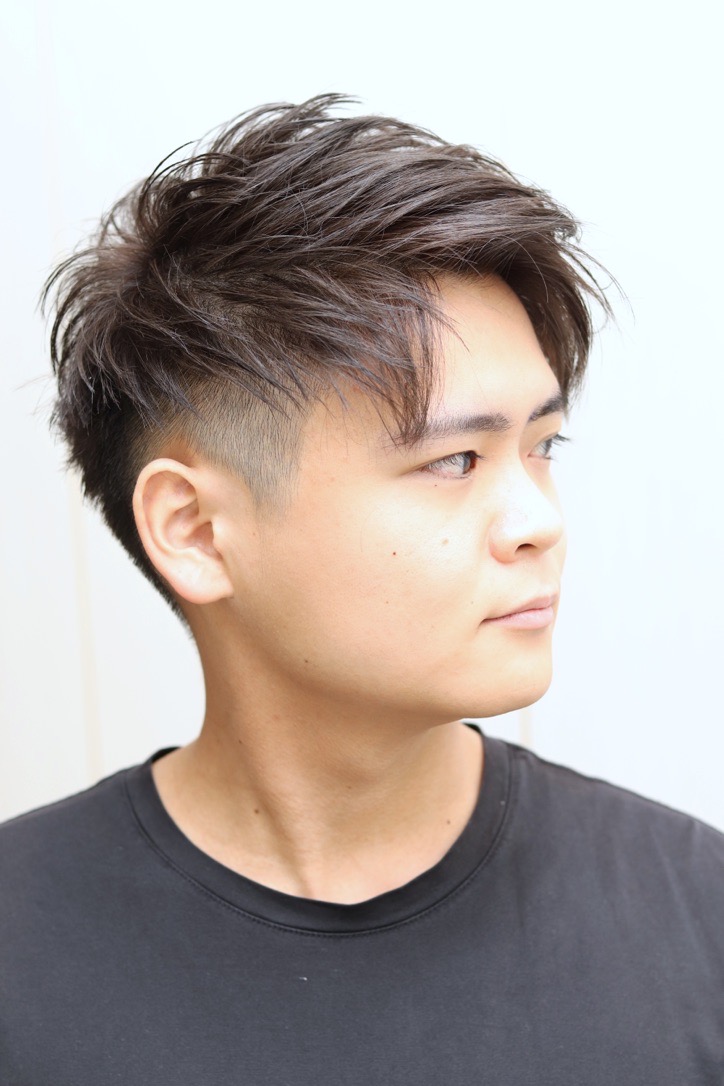 サイドのツーブロックを高めに刈り上げて、男らしさが上がっております。