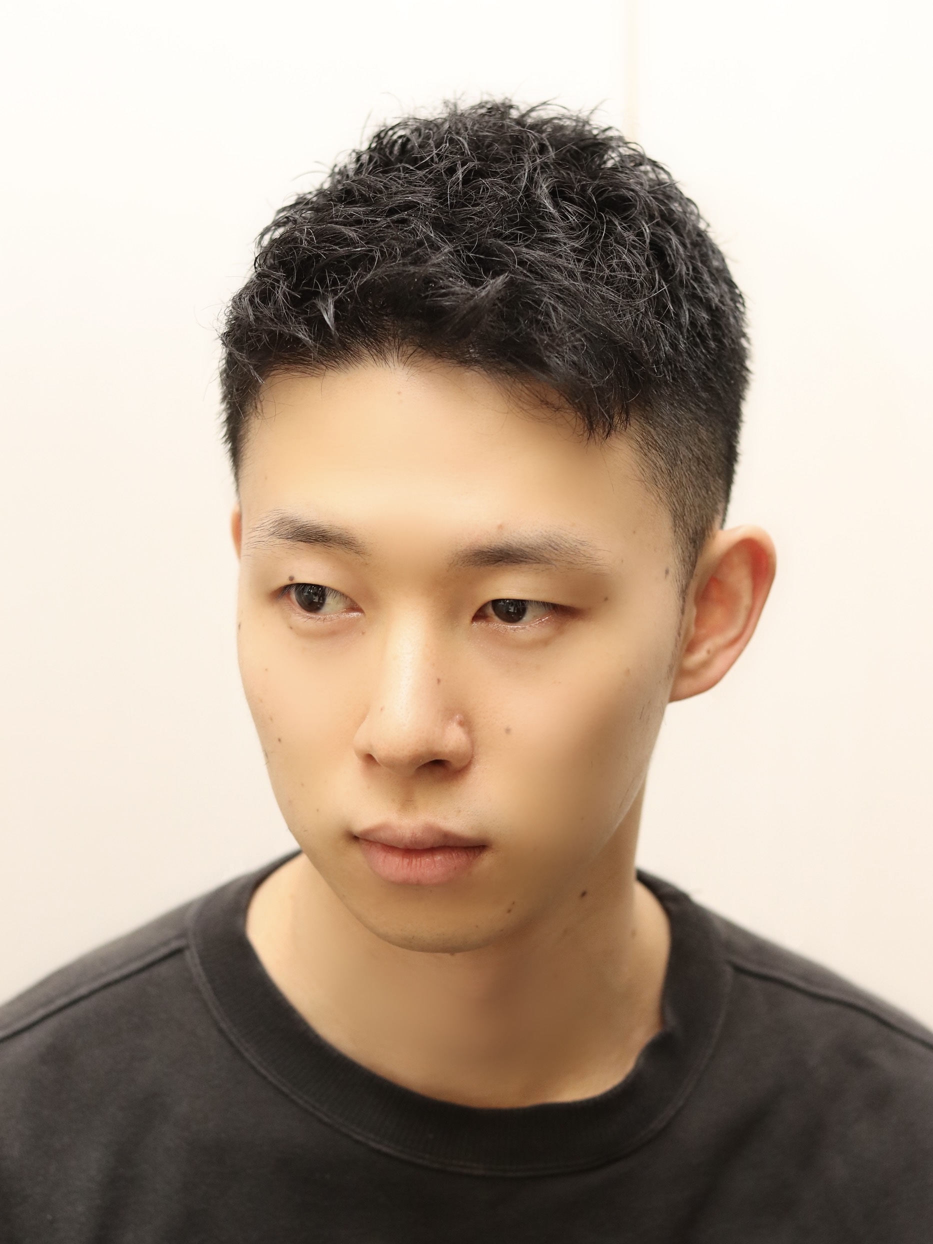 短すぎず長すぎず、バリカン3mmからのグラデーションをつけて刈り上げています。