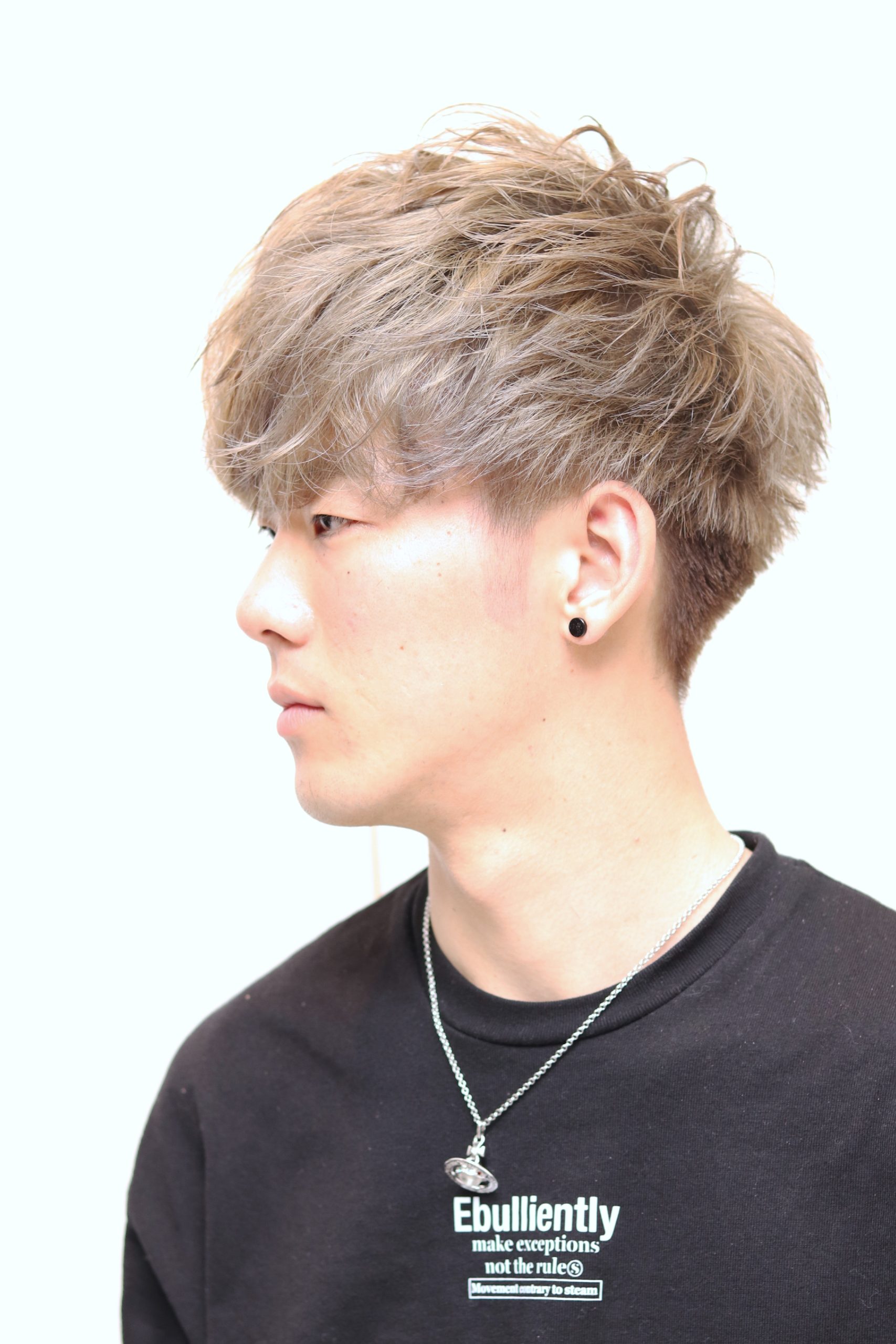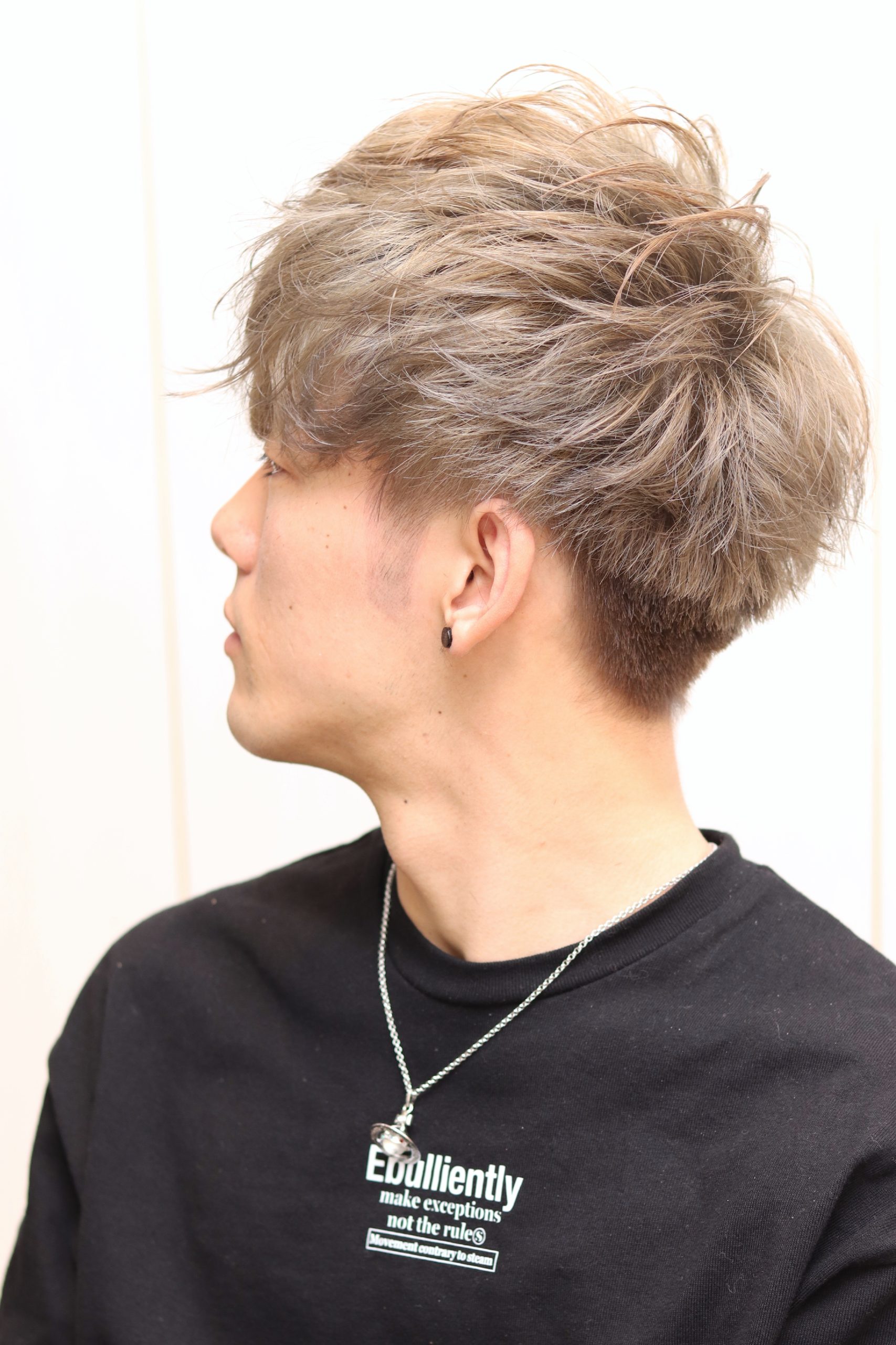 マッシュベースのツーブロックスタイルに1ブリーチでカラーを入れたベージュカラースタイルです。
