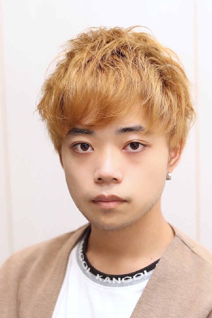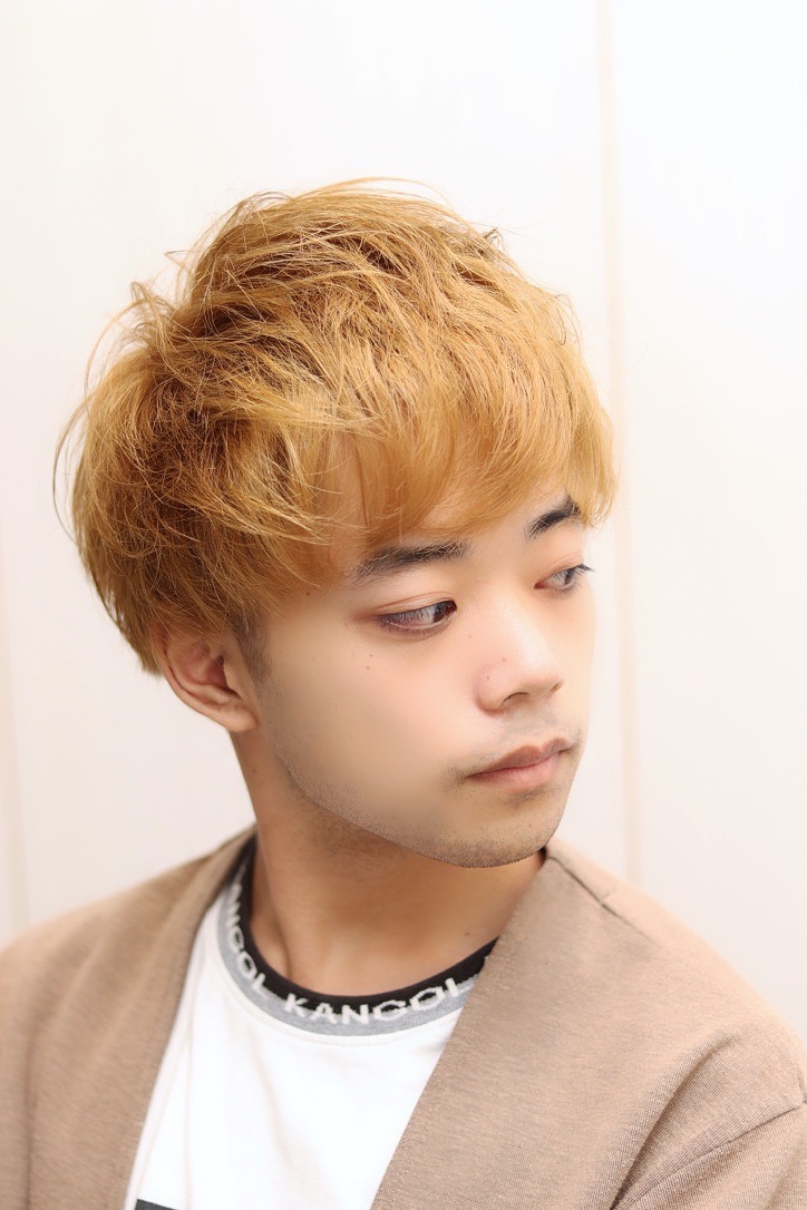 ツーブロックのマッシュスタイルにブリーチ&カラーでベージュにしました。
