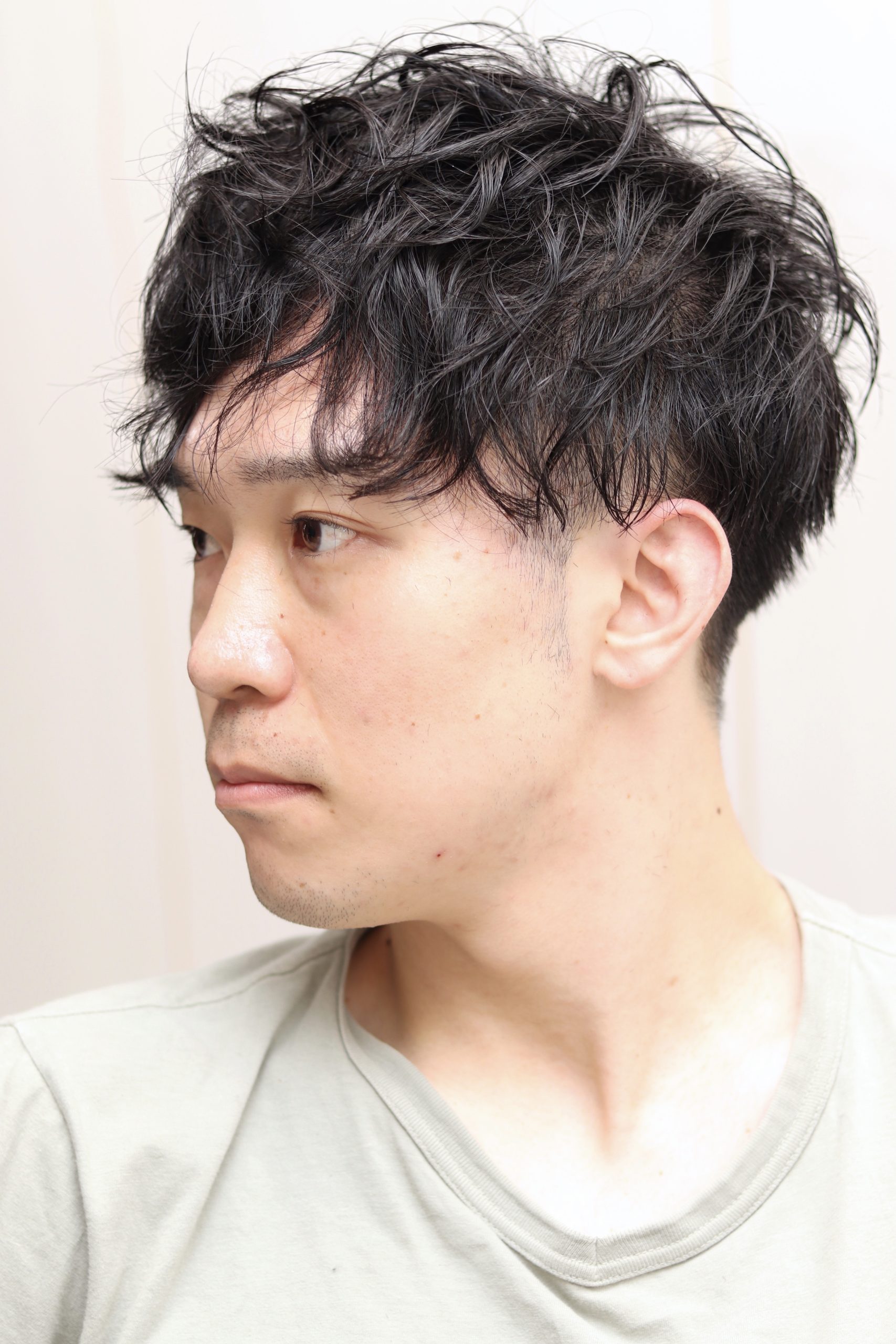 ツーブロックスタイルにスパイラルパーマでボリュームを出しやすくしました。