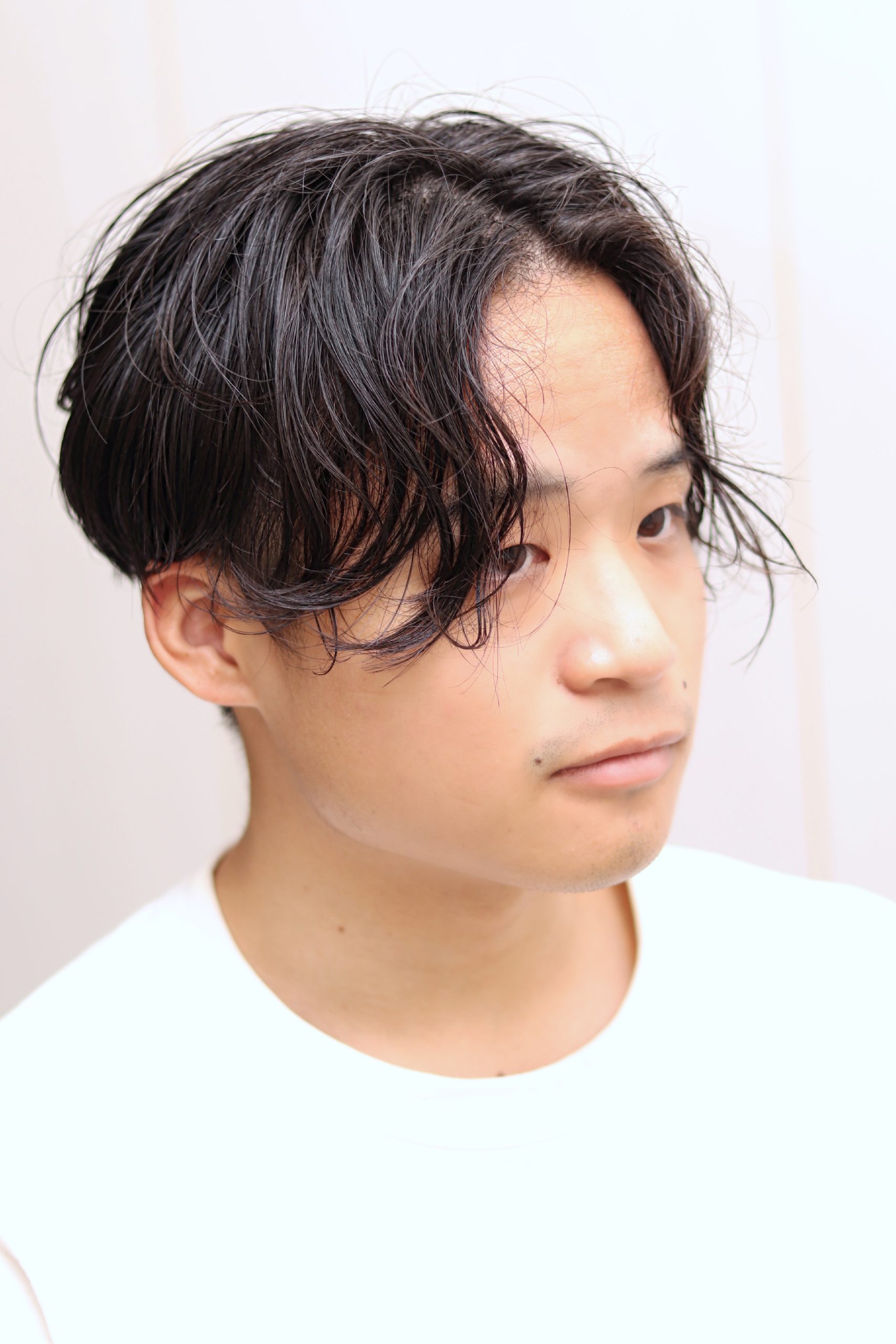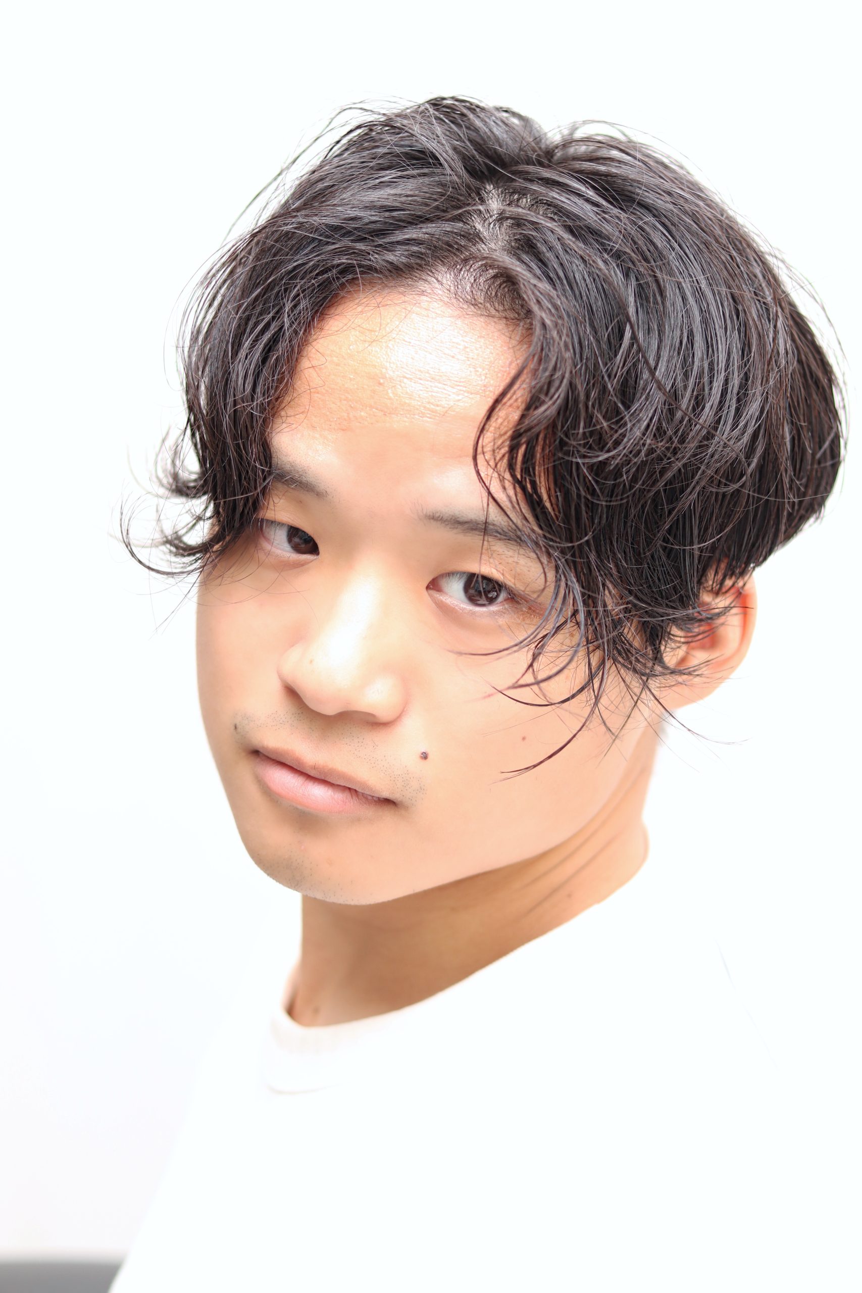 - 【ヨシザワ人形町】ツーブロ前下がりセンターパートゆるパーマ