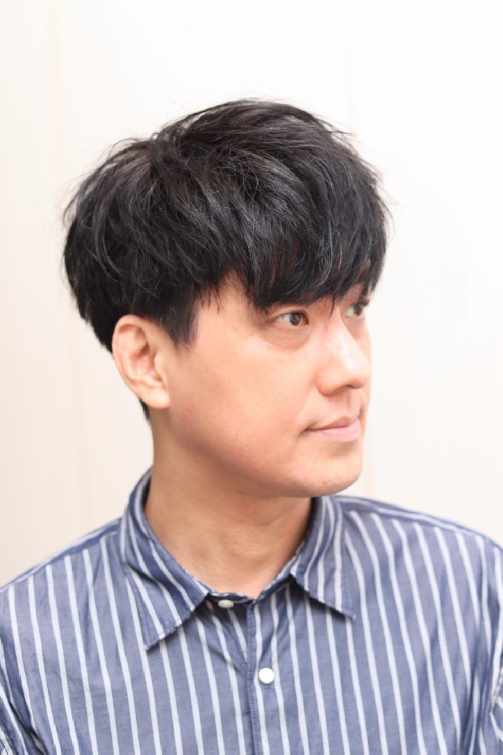 フロントに重さを残したマッシュスタイルです。サイドはツーブロック、後ろは刈り上げでスッキリしております。
