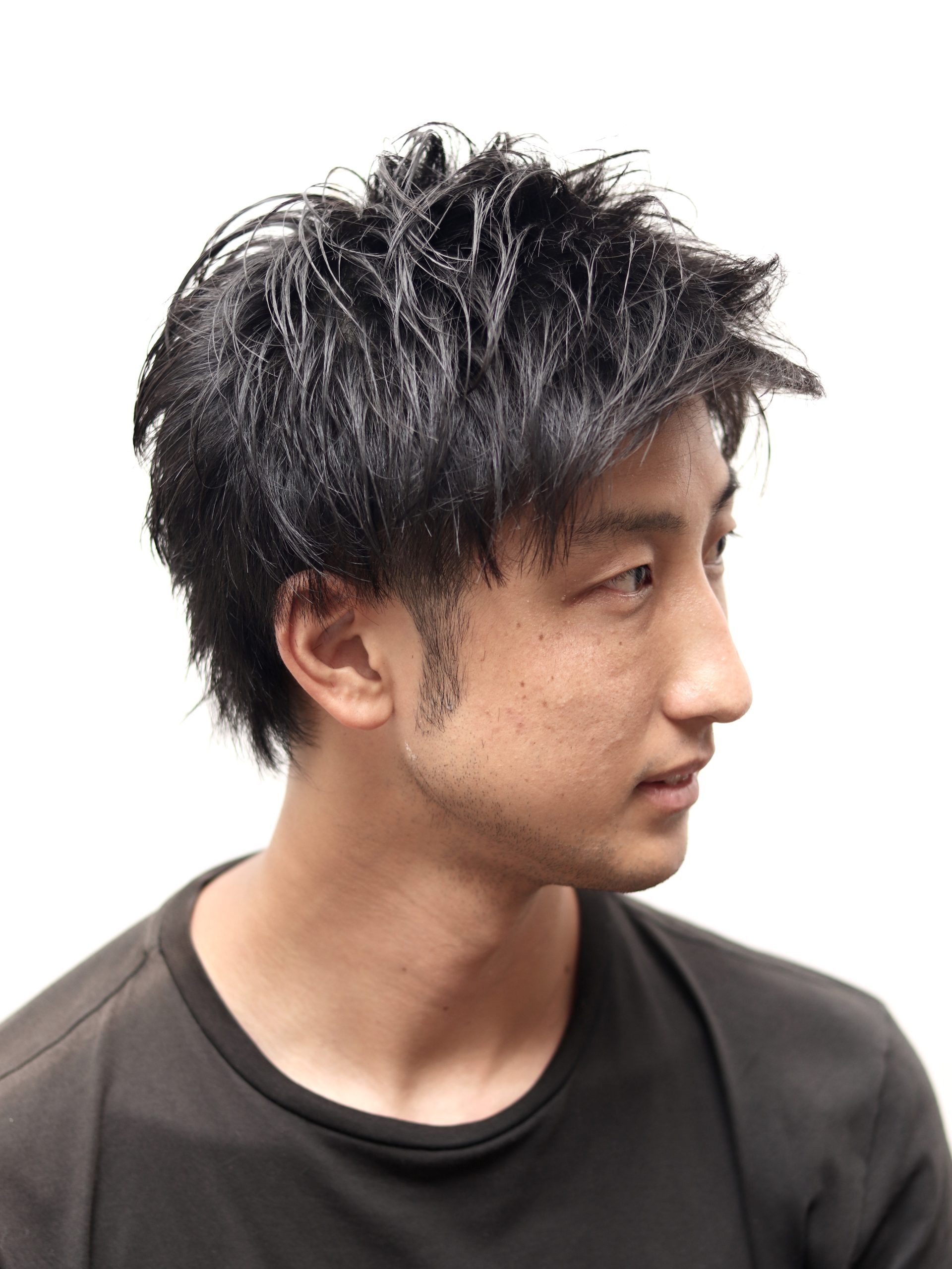 襟足を少し残したツーブロックスタイルです。前髪は上げても下ろしてもどちらでも出来ような長さに切りました。