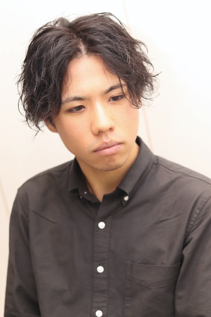 センターパートスタイルに波巻パーマで劇的にカッコ良くなります。