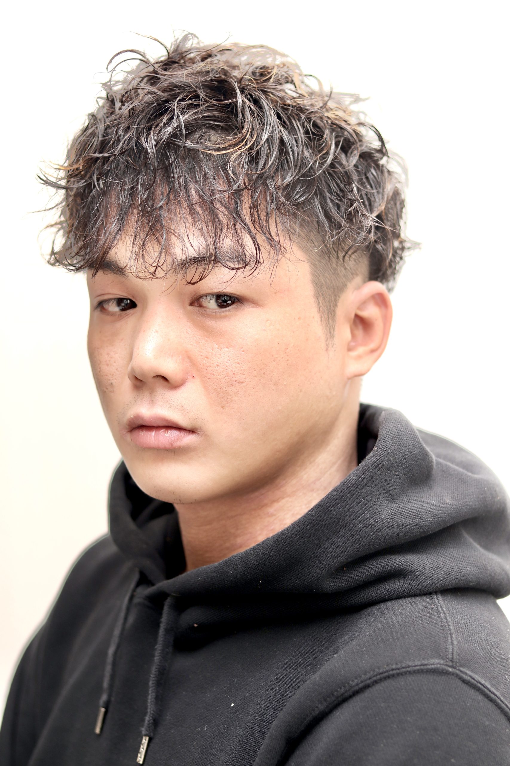 ハードなスパイラルパーマで男らしさ全開です。