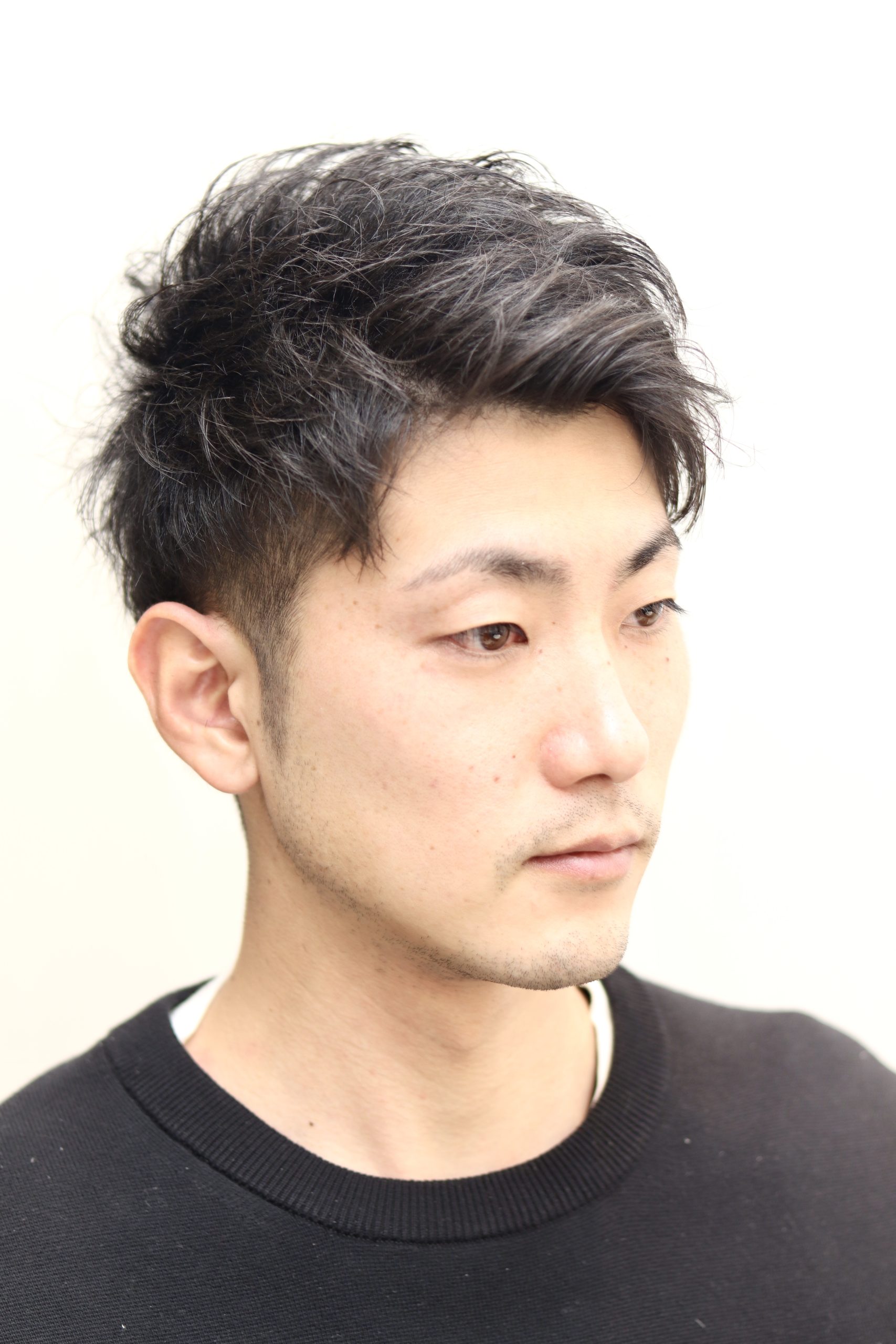 くせ毛を存分に活かしてパーマの質感を出したツーブロックスタイルです。