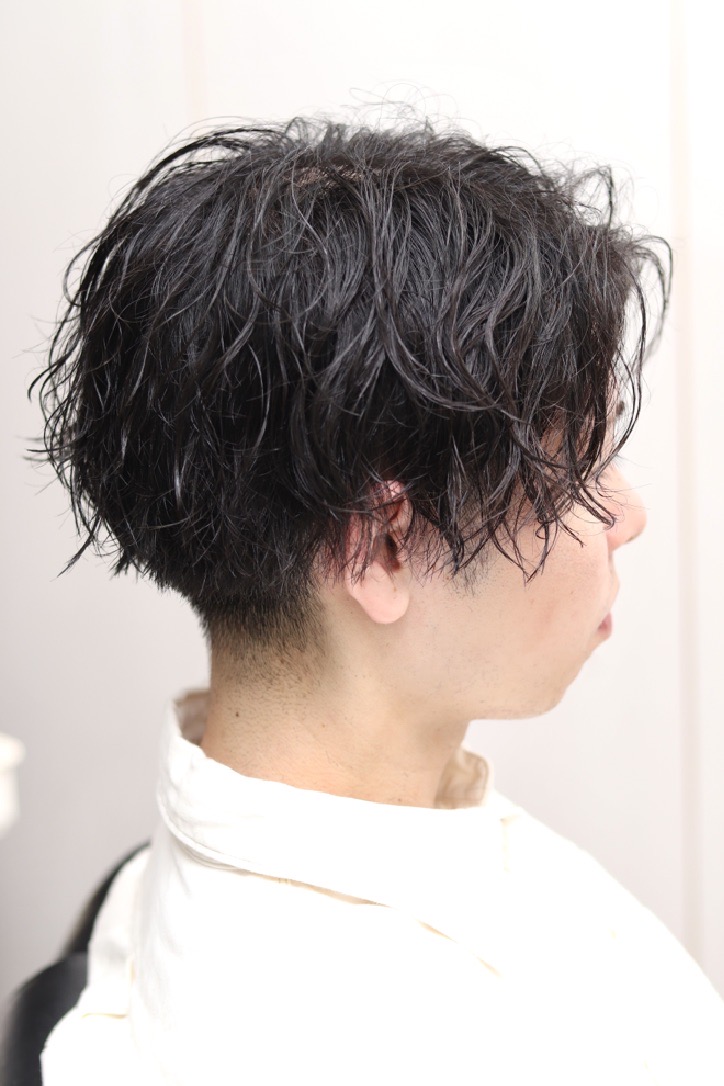 - センターパート緩めツイストスパイラルパーマツーブロック