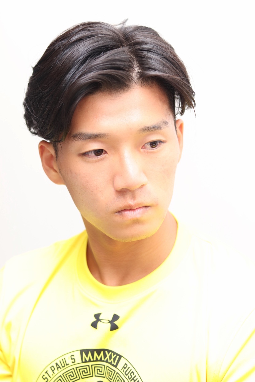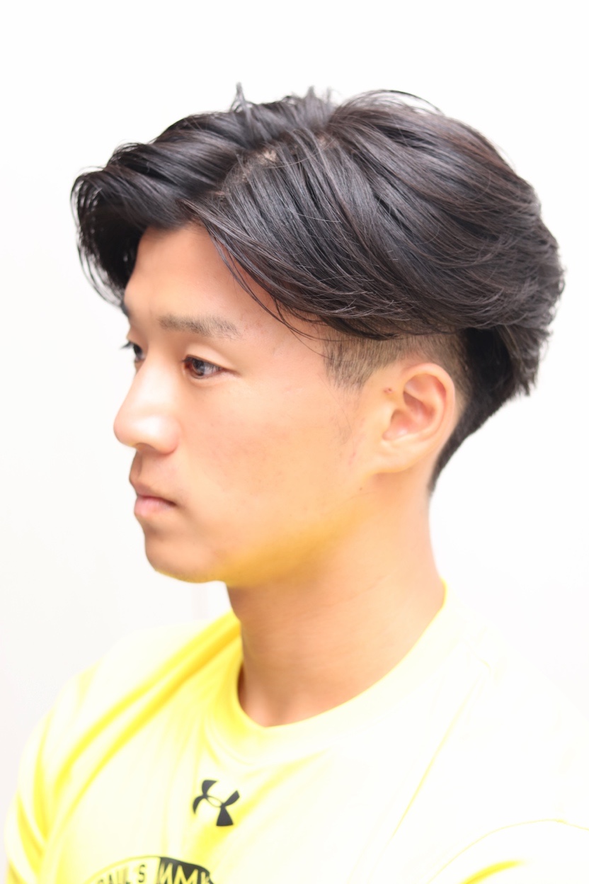 センターパートツーブロックスタイルにスタイリングしやすいようにニュアンスパーマをかけました。
