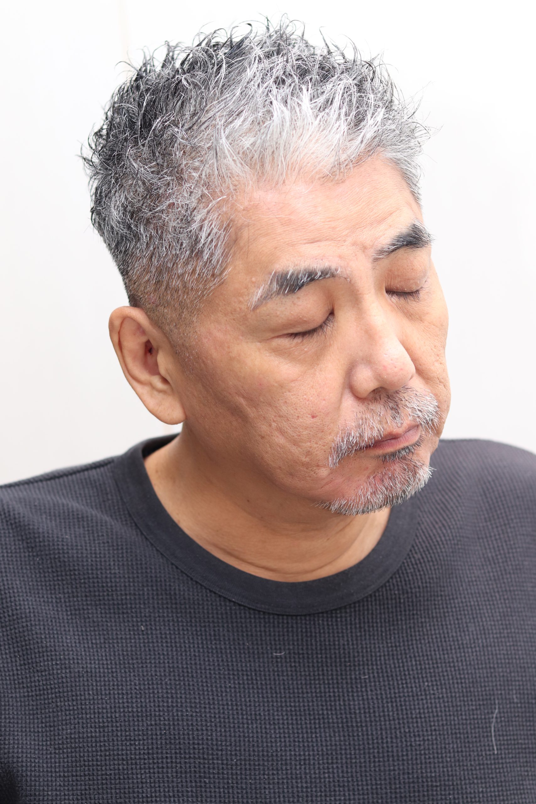 - 50代60代ロウフェードベリーショートパーマソフトモヒカン