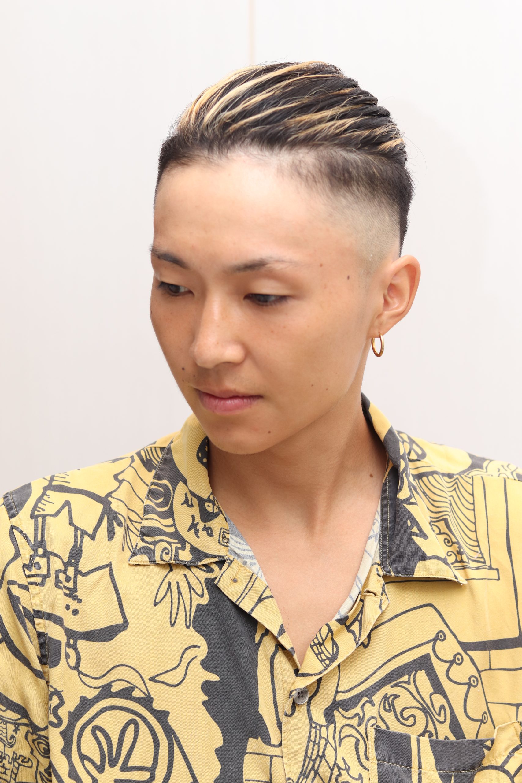 サイドは0ミリからのスキンフェードでマンバンするならピッタリです。