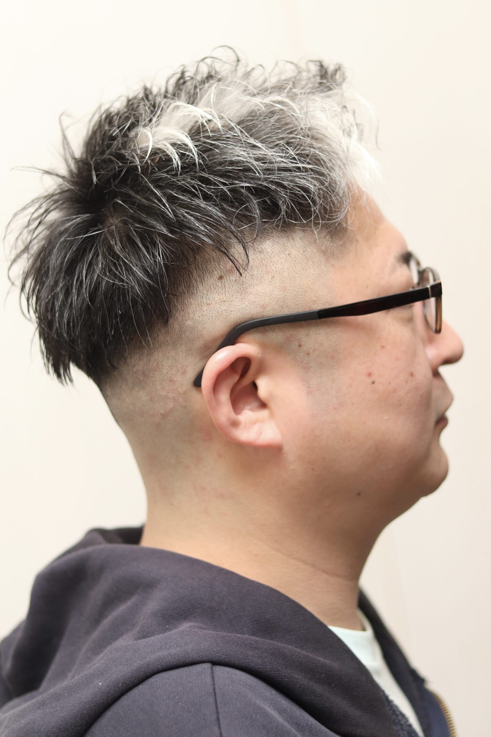 - 30代40代爽やかスキンフェードアップバングツーブロック