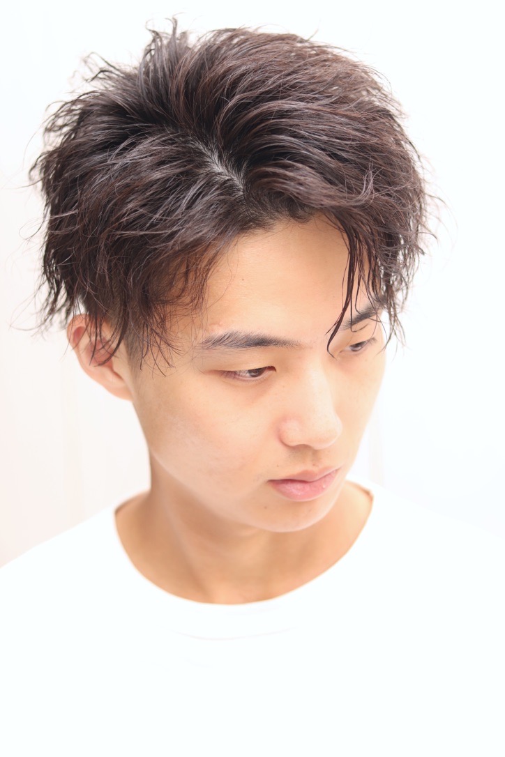 - 40代30代ツイスパセンターパートマッシュツーブロックメンズ