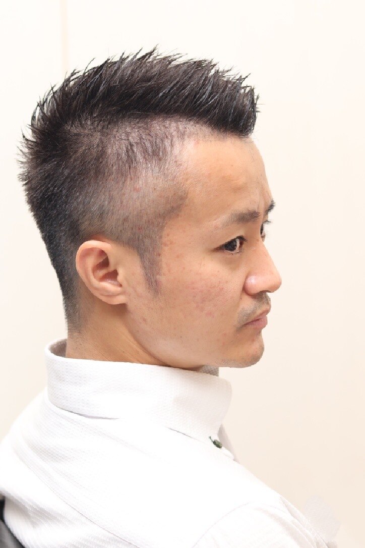 - 30代40代ビジネスボウズソフトモヒカンツーブロックフェード