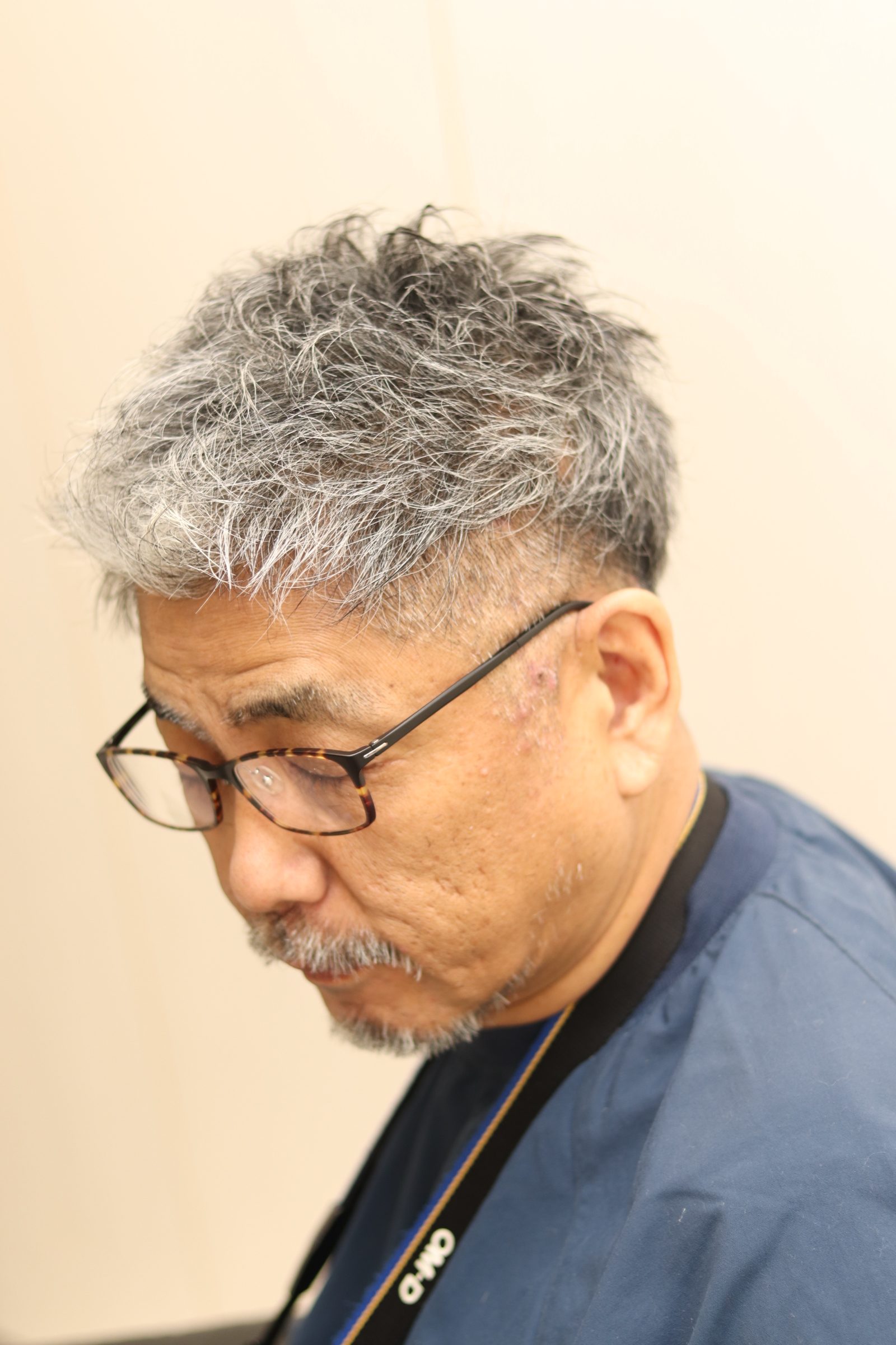 ツーブロックでかつソフトモヒカンラインのシルエットでオシャレに魅せます。年配の方でも若々しく、カッコ良く!