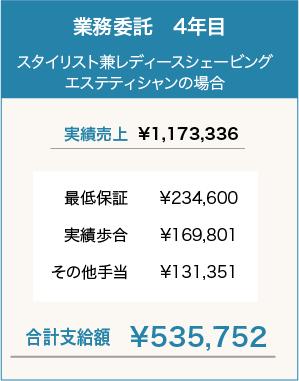 ヨシザワグループでは今までと変わらず社員として店長職に就いたり、会社の役員になることはもちろん、社員から個人事業主へ転身し、店内独立することもできます。自分自身にお客様がつき、売上の目処がたった状態での店内独立ですから収入を大きく増やすことができるようになります。