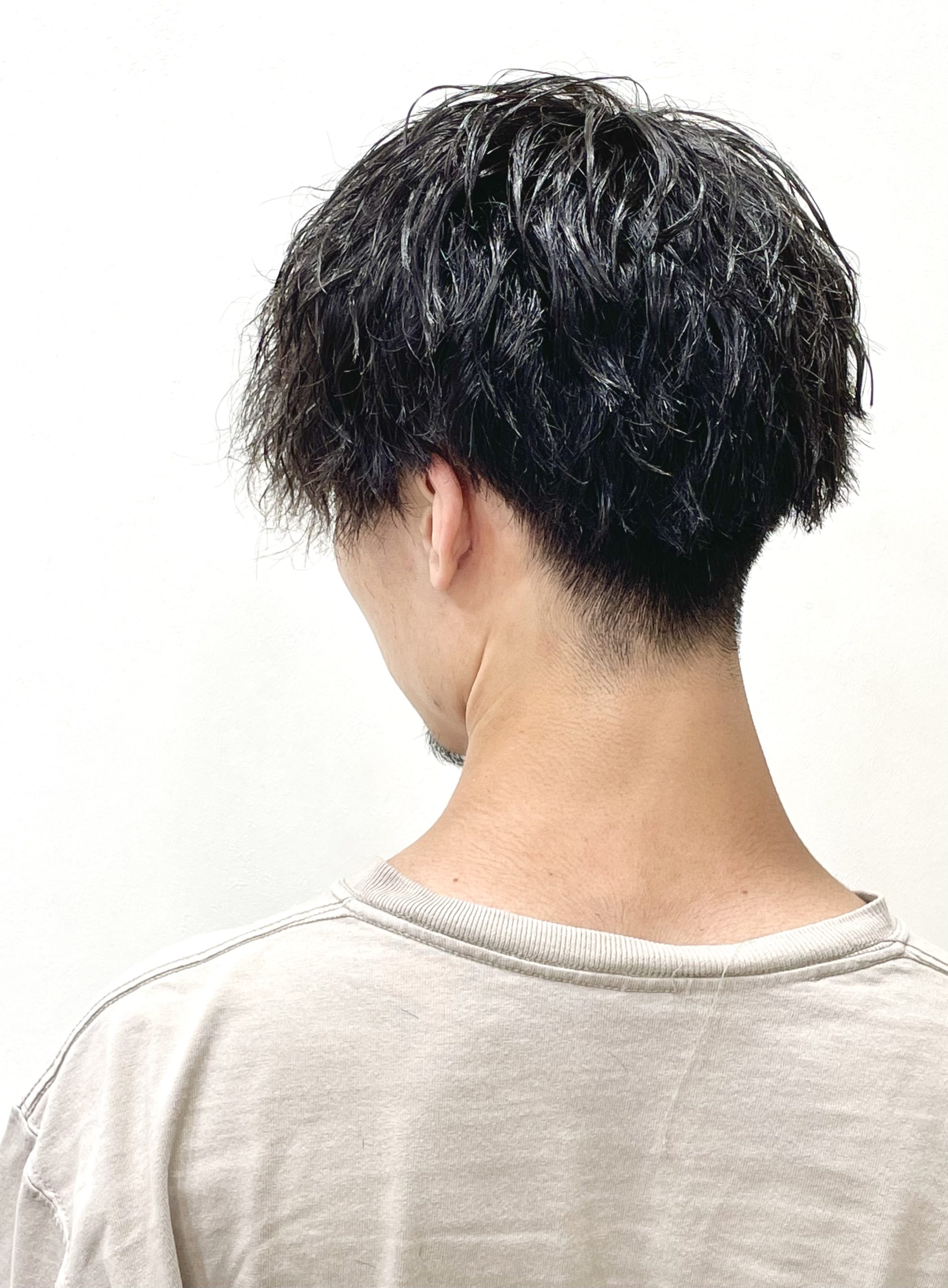 強めのツイストスパイラルパーマ 中はツーブロックでさっぱりと。 下ろしても上げてもセットできおしゃれな幅が広がります