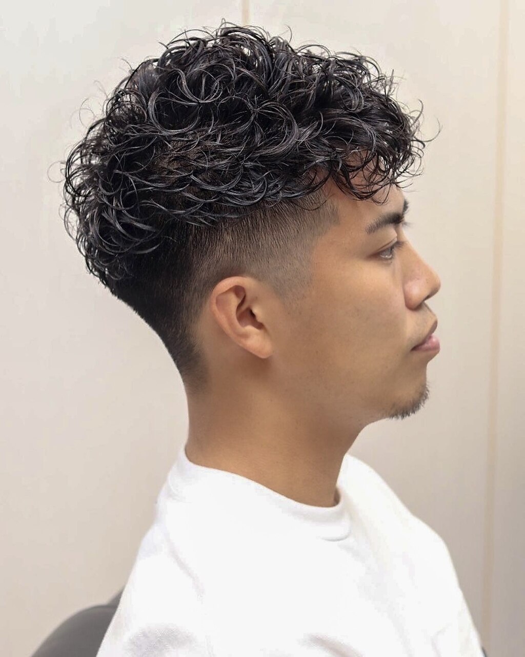 バーバースタイルのフェード、くるくるパーマです!男らしさが上がり、清潔感も上がる。春はイケチェン!