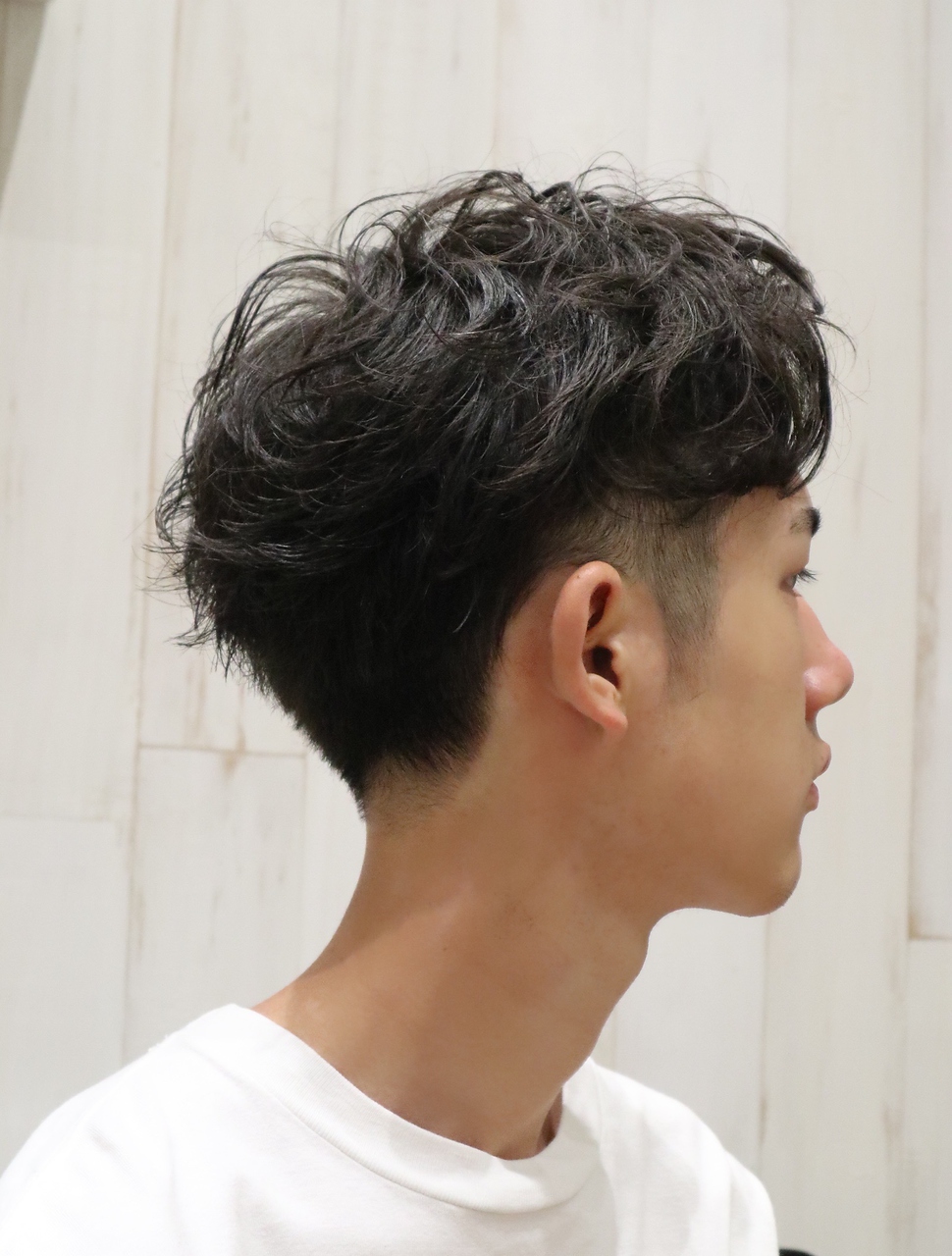 くせ毛を活かしたアップバングスタイルです。スタイリング剤はアリミノmenハードバームです!