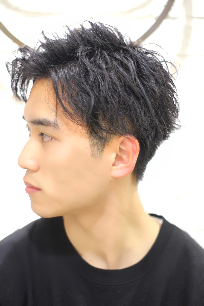 黒髪でもカッコよく決まる無造作センターパート!束感やセットのしやすさを重視したカットをしているのでドライヤーとハードワックスで簡単セット!※こちらのスタイルご希望の際はブックマークをしてご提示ください!