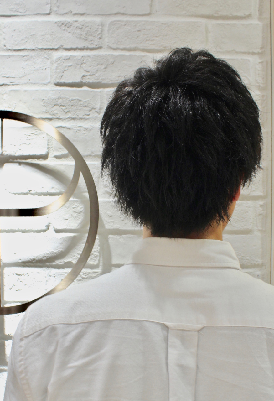 王道の黒髪レイヤーマッシュ!! トップを短くアウトラインを長すぎないようにし、全体的に軽さをだして爽やかさを演出しています!赤みを抑えたクールな黒髪に仕上げてます! トップにボリュームを出すように、あとは毛流れどうりに乾かします。整髪料はお好みでワックスやジェルを全体的につけ、毛束を作れば完成です!!