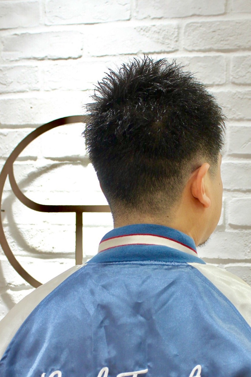 今流行りのバーバースタイルであるフェード風にまわりをスッキリさせ、上は動きが出せる長さでスパイキーなベリーショートスタイルです!!
