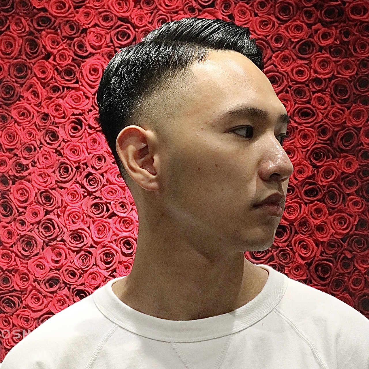 アイロンパーマで形を作りセットを楽にした、七三スキンフェードスタイルです!