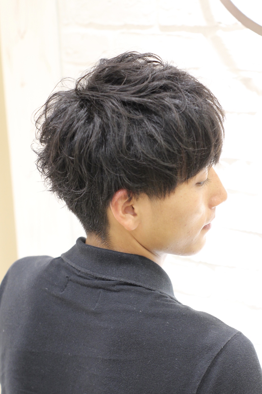 強すぎないスパイラルパーマで流行りのスタイルを!ワックスを揉み込むだけ!