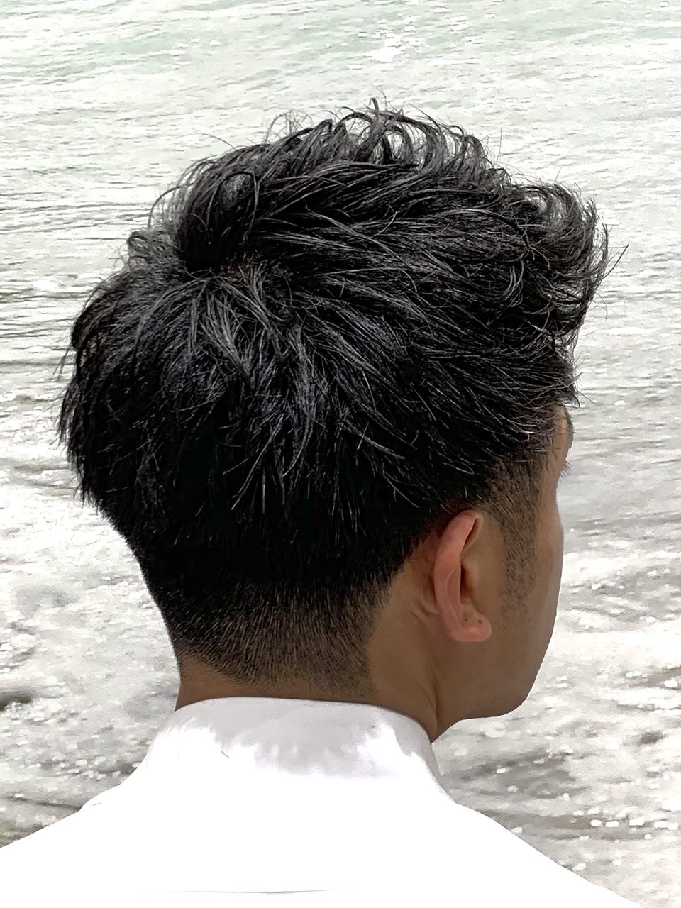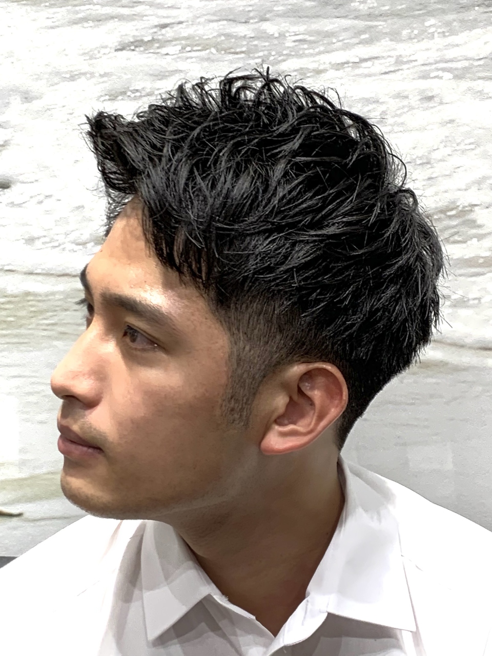 ビジネス、カジュアルシーンどちらでもカッコよく決まるアップバングビジネスショート。かけすぎないパーマ感で束の流れとスタイリングのしやすさを重視しています!