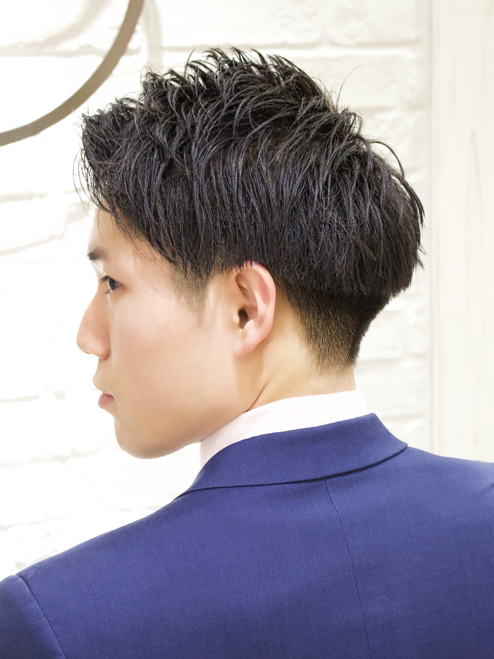 王道ビジネスアップバングショート!さわやかな清潔感と男らしさのあるスタイルです!お客様の骨格に合ったカット、スタイリングもご提案させていただきます。パーマも承っております!