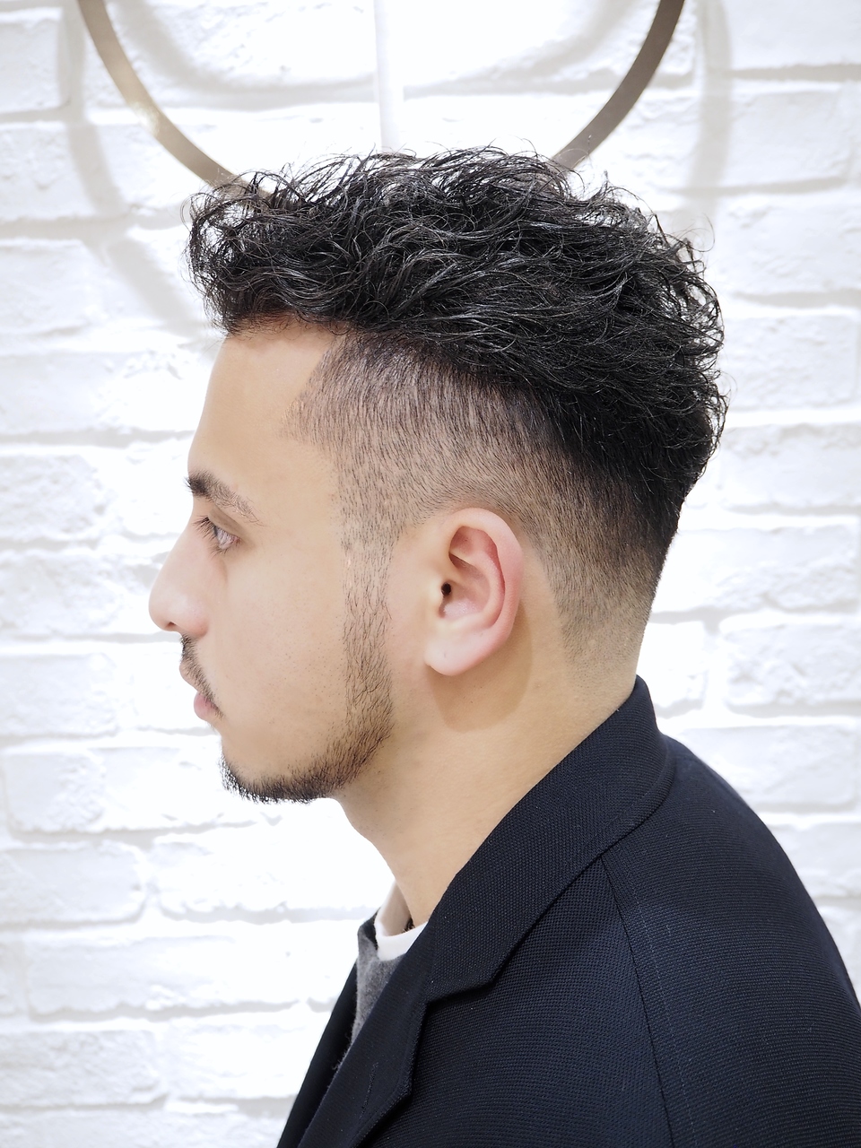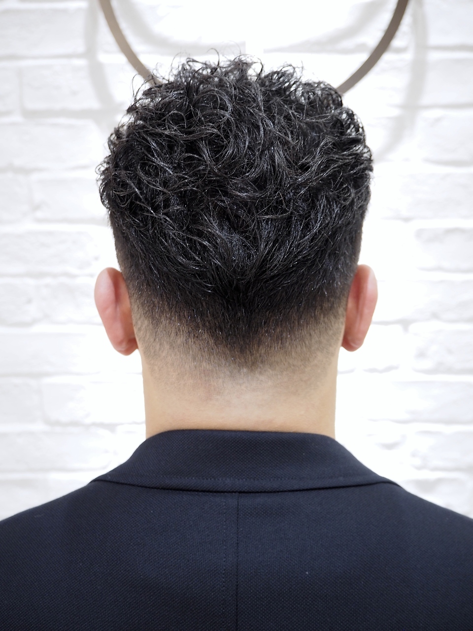 周りはガッツリとフェード、トップフロントはスパイラルパーマで動きを出したリバースショートです!