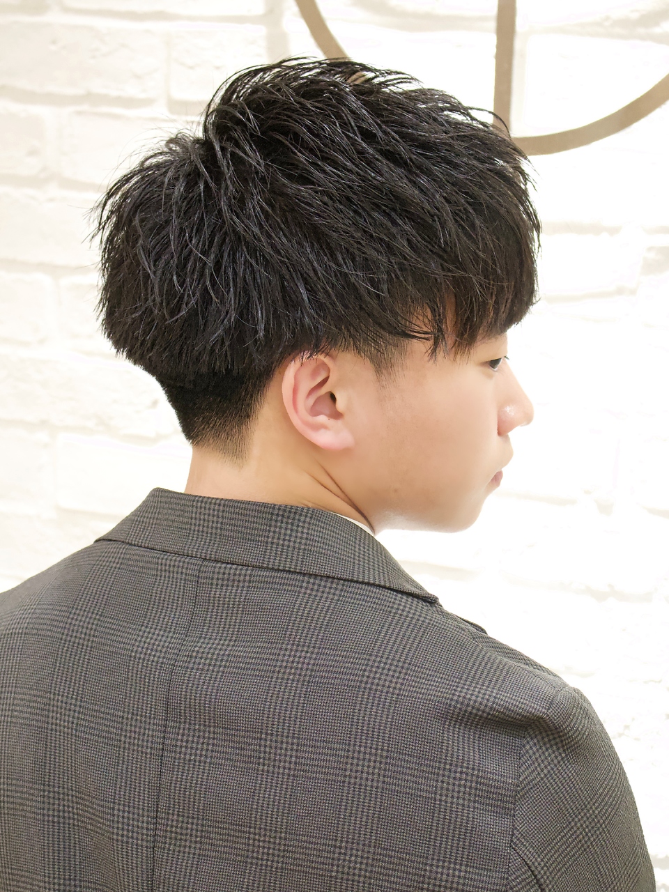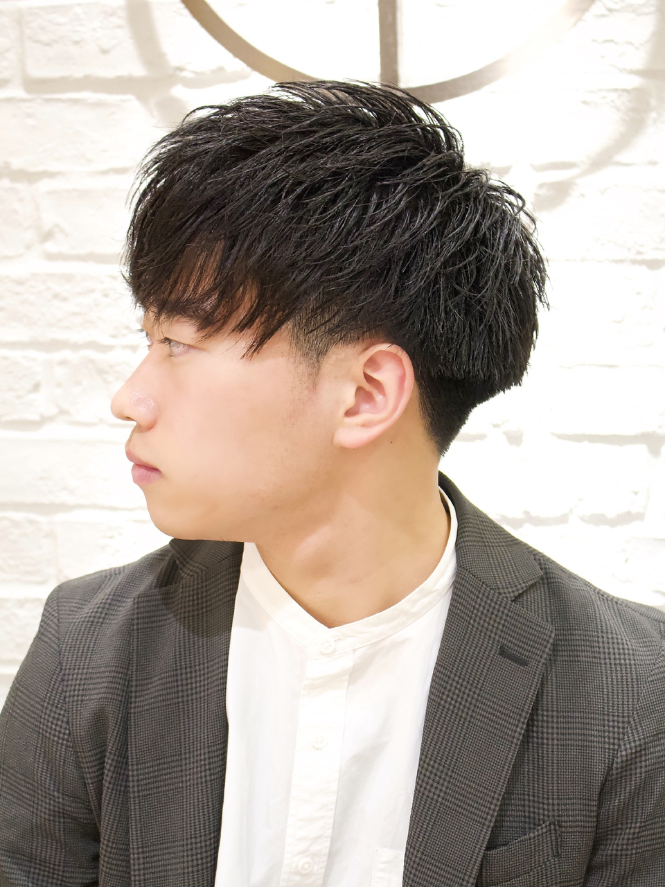ビジネスでもおしゃれに決まるマッシュスタイル!後ろを高めに刈り上げて前下がりにしているのでバックをスッキリさせたい方は是非!!