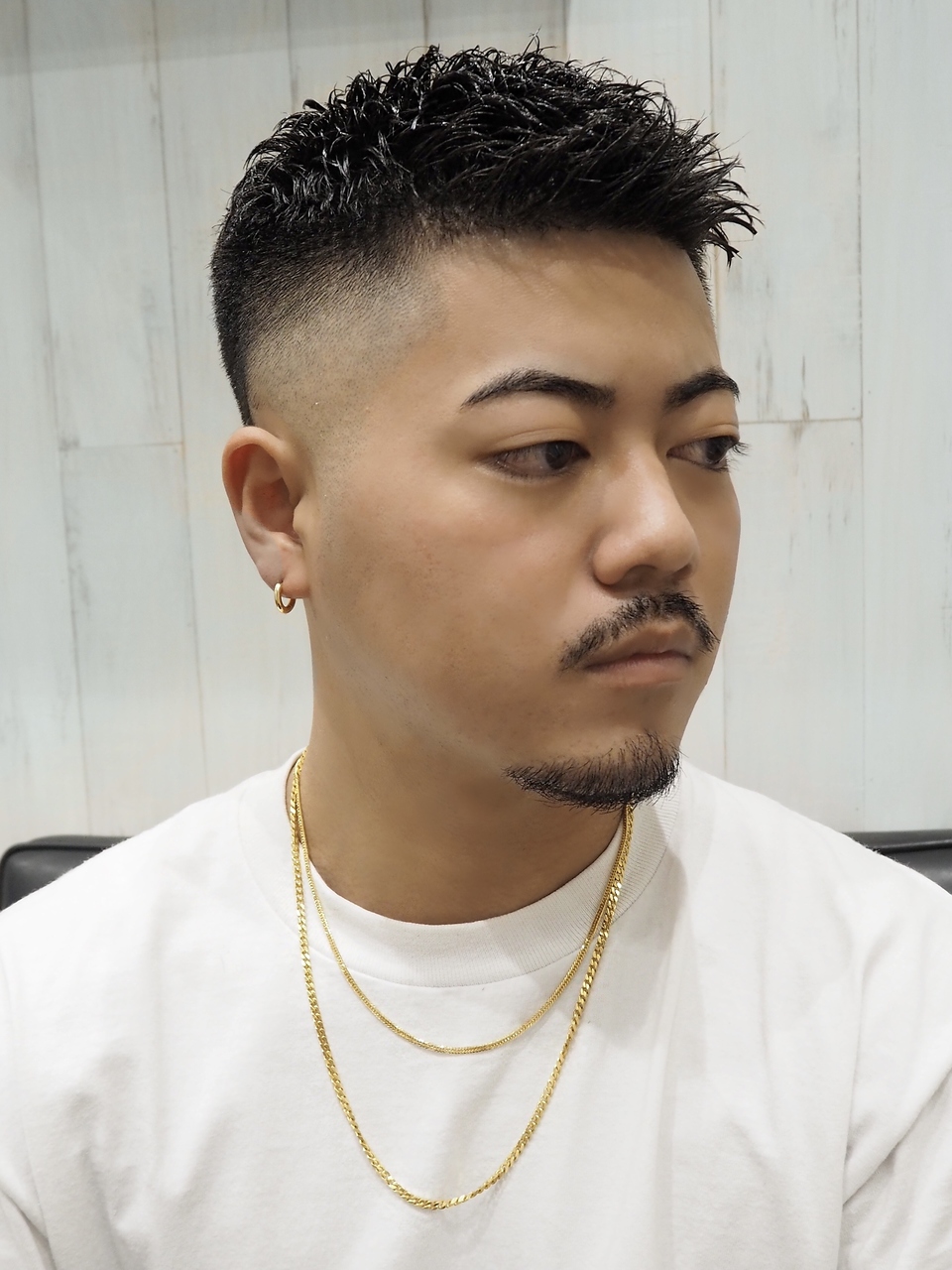濡れパンスキンフェードスタイル!・【ショートスキンフェードじゃ物足りない】【直毛のせいで短いスタイルが出来ない】【朝のセットをとにかく楽に済ませたい】などのお悩みをお持ちの方にオススメ!フェードの高さはお好みに合わせて設定できます。