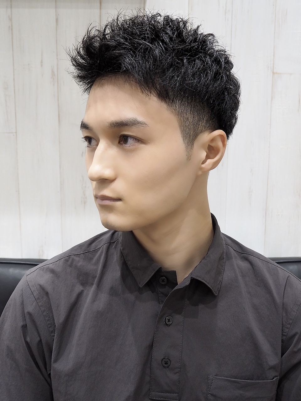 直毛.剛毛で短くてもアイロンパーマで動きのあるアップバングスタイルが出来ます!
